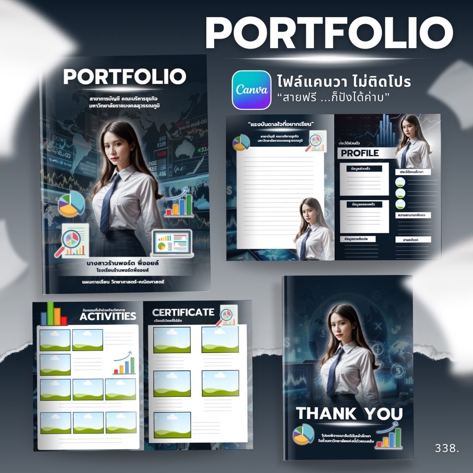 ร้านพี่ออยล์เจ้าเก่าปี 60 "Portfolio นักเรียน นักศึกษา ราคาย่อมเยา ตรงสาขา" **บรีฟงานได้ คุยง่าย ส่งไฟล์งาน PDF ,PNG ,JPG หรือไฟล์ Canva สามารถแก้ไขงานเองได้ สะดวก รวดเร็ว ขั้นตอนการทำงาน 1. แจ้งรายละเอียดงาน พร้อมบอกแบบที่ต้องการ หรือให้ทางเราออกแบบให้เลย 2. ลูกค้าส่งข้อมูลประวัติ ข้อมูลส่วนตัวที่อยากให้ใส่ในชิ้นงาน 3. ต้องการไฟล์ canva แก้ไขเอง สามารถแจ้งได้เลย 4. มีบริการเข้าเล่ม