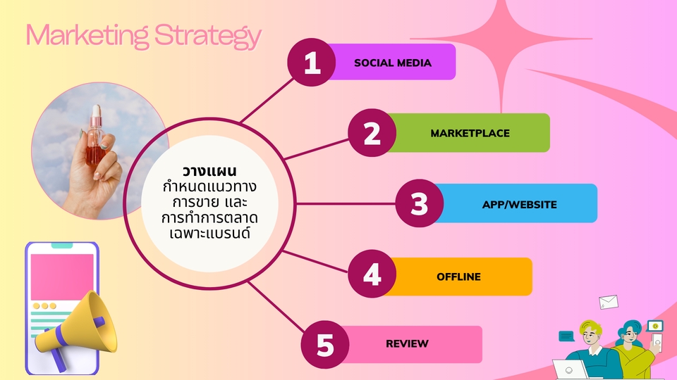 - • 5.แผนการตลาด และ การขาย Online & Offline Marketing ที่เหมาะสมใช้งบการตลาดที่น้อยและคุ้มค่าที่สุด!!