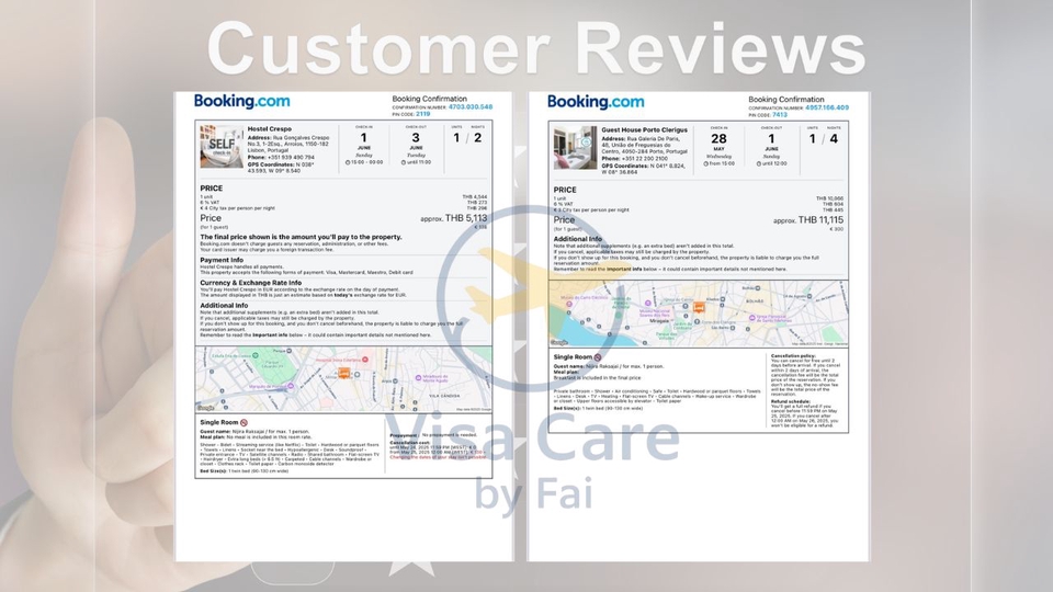 ฿300* Booking Hotel (จองโรงแรม) ได้ 2 Booking ใบจองโรงแรมแบบยกเลิกได้ มีข้อมูลวันเดินทาง และชื่อผู้เดินทาง