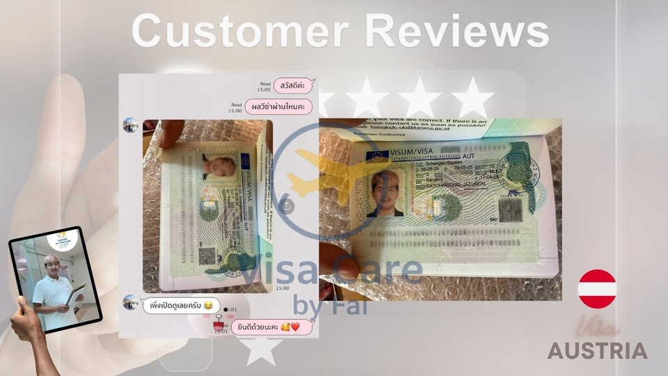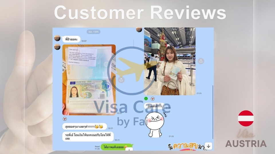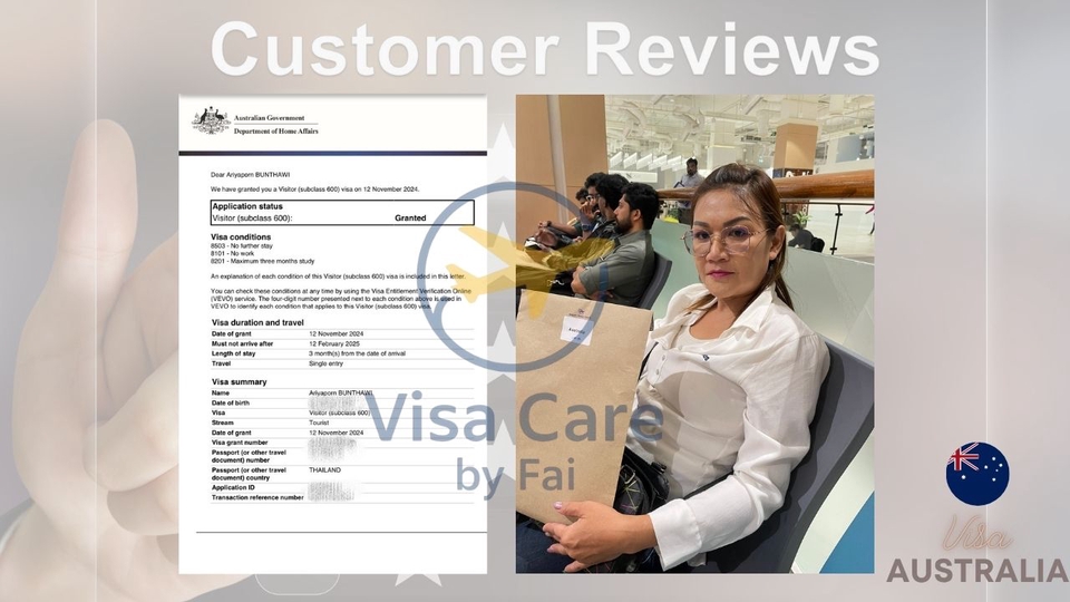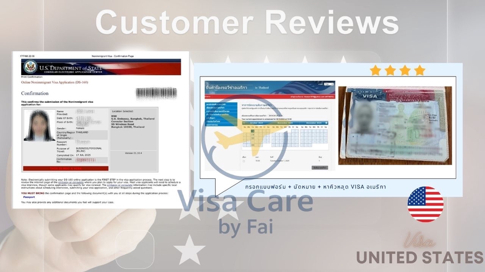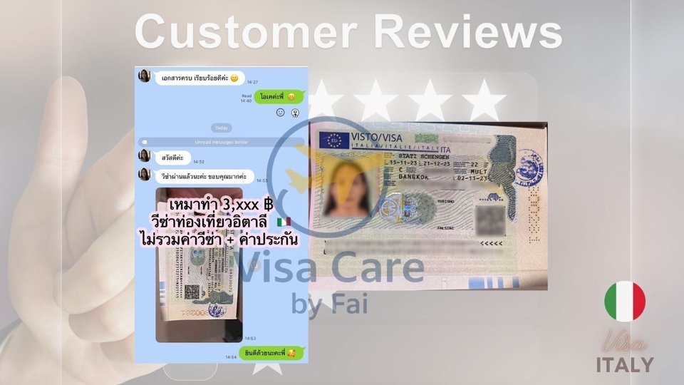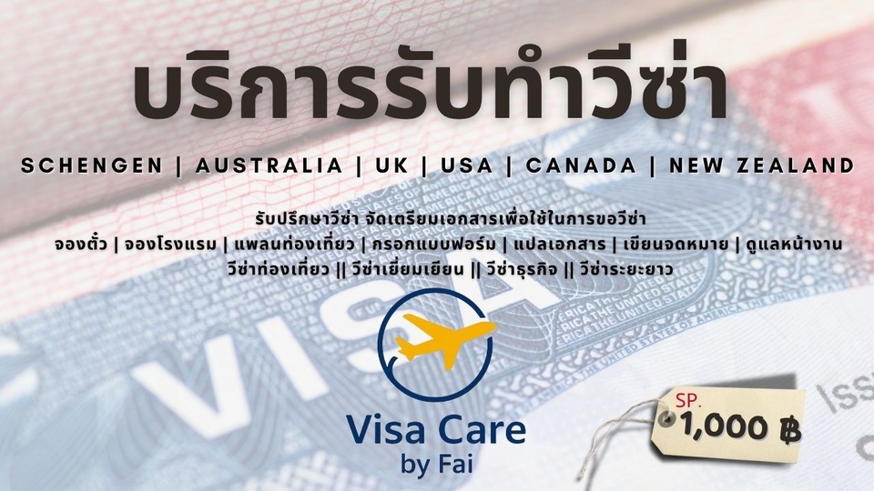 Visa Care by Fai - วีซ่าคุณเราดูแล 🌍 บริการให้คำปรึกษาและดูแลเอกสาร "ขอวีซ่า" แบบครบวงจร วีซ่าท่องเที่ยว / วีซ่าเยี่ยมเยียน / วีซ่าธุรกิจ / วีซ่าระยะยาว วีซ่าเชงเก้น / Schengen ออสเตรเลีย / Australia อังกฤษ / UK อเมริกา / USA แคนาดา / Canada นิวซีแลนด์ / New Zealand หากคุณไม่มีเวลาเตรียมเอกสาร ไม่แน่ใจว่าจะเริ่มจากตรงไหน หรือกังวลว่าเอกสารจะไม่ครบ เราพร้อมดูแลคุณในทุกขั้นตอน เพื่อให้การขอวีซ่าเป็นเรื่องง่ายและมีประสิทธิภาพ เอกสารครบตามหลักกฏเกณฑ์ของสถานทูต 🔎 บริการของเรา ครอบคลุมทุกความต้องการ: ✅ ตรวจสอบความถูกต้องของเอกสาร ✅ แนะนำเอกสารที่จำเป็นต้องใช้ ✅ นัดหมายวันยื่นวีซ่า ✅ กรอกแบบฟอร์มออนไลน์ ✅ เขียนจดหมายประกอบการยื่น (จดหมายแนะนำตัว, หนังสือเชิญ ฯลฯ) ✅ แปลเอกสาร ไทย–อังกฤษ ✅ จองโรงแรม / ตั๋วเครื่องบิน สำหรับแนบเอกสาร ✅ วางแผนการเดินทาง (Travel Plan) ✅ จัดทำประกันการเดินทาง ✅ รับยื่นเอกสารแทน (เฉพาะสถานทูตที่อนุญาต) บริการเสริม: ✅ ดูแล/พาไปในวันยื่นเอกสาร (มีค่าบริการเพิ่มเติม) 💼 ทำไมควรเลือกใช้บริการจากเรา 🌟 มีประสบการณ์ตรงในงานขอวีซ่ามากกว่า 10 ปี 🌟 ให้คำแนะนำอย่างตรงจุด ซื่อสัตย์ โปร่งใส ตามเกณฑ์สถานทูต 🌟 ช่วยประหยัดเวลา ไม่ต้องวุ่นวายเตรียมเอกสารเอง 🌟 ครบจบในที่เดียว ทั้งให้คำปรึกษา แปล จอง ทำแผน และยื่นเอกสาร 📝 ขั้นตอนการทำงาน 1.แจ้งจุดประสงค์ในการเดินทาง (ท่องเที่ยว / เยี่ยมเยียน ฯลฯ) 2.ลูกค้าส่งเอกสารตามรายการที่แจ้ง (เริ่มดำเนินการหลังส่งเอกสารครบ) 3.เอกสารจะถูกจัดส่งให้ลูกค้าในรูปแบบ PDF / Email / EMS 4.ระยะเวลาทำงาน 1–7 วัน (ขึ้นอยู่กับเอกสารแต่ละกรณี) 5.หากมีคิวก่อนหน้า ทางเราจะแจ้งวันที่เริ่มรับงานให้ทราบล่วงหน้า 6.มีประกันการเดินทางโดย กรุงเทพประกันภัย 📩 สนใจสอบถามหรือขอคำปรึกษาเบื้องต้น ฟรี ไม่มีค่าใช้จ่าย ทักแชทมาได้เลยค่ะ เรายินดีให้คำแนะนำอย่างเต็มที่ หรือจะเยี่ยมชมรีวิวเพื่อประกอบการตัดสินใจก่อนได้นะคะ