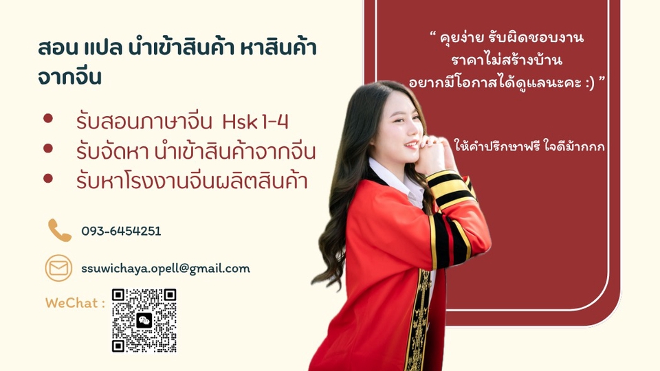 ✨รับสอนภาษาจีนค่ะ เด็กเล็ก ผู้ใหญ่รับหมดค่า ราคาเป็นกันเอง ✨รับหาสินค้าจากจีน หาโรงงานผลิตให้ค่ะ