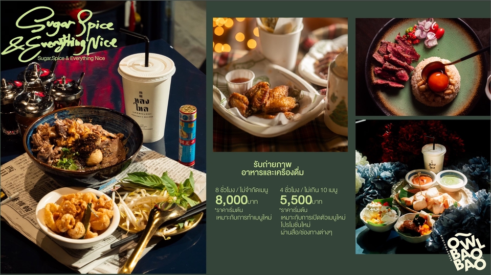 ฿8,000เหมาะสำหรับลูกค้าที่ต้องการภาพสำหรับทำเมนูให้ครบทุกรายการ ไม่เกิน 3 รูปต่อรายการ ไม่มีพร๊อพให้ แต่จะประยุกต์ใช้Elementของภายในร้านเข้ามาประกอบ ไม่จำกัดจำนวนภาพถ่าย ภาพที่ถูกเลือกจะถูกรีทัชเบื้องต้น