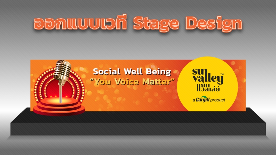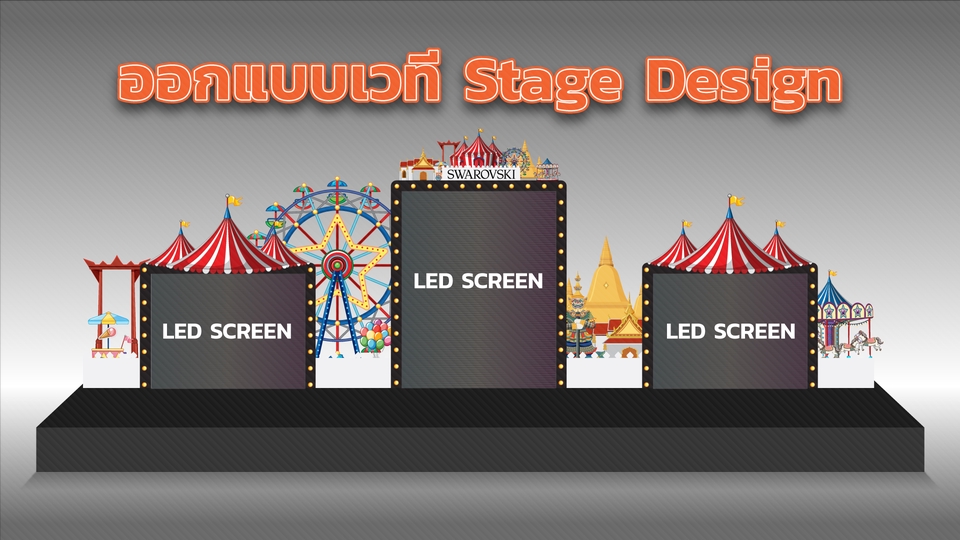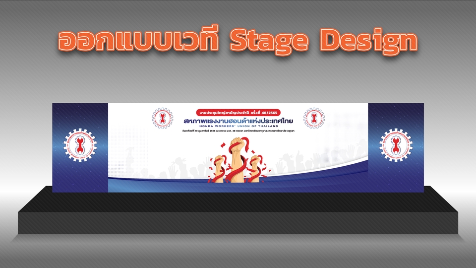ออกแบบเวที Stage Design กราฟิกเวที Graphic ประกอบเวที เวทีงานเปิดตัว งานประชุม สัมมนา พื้นหลังเวที ออกแบบด้วยโปรแกรม Adobe Illustrator [Perspective ไม่ใช่ 3D Object] สามารถคิดธีม หรือออกแบบตามธีมงานลูกค้าได้ กิจกรรม Grand Opening เปิดตัวสินค้า อื่นๆ ขั้นตอนการทำงาน 1. พูดคุยทำความเข้าใจคอนเซ็บต์ รายละเอียด ขอบเขตงาน 2. ออกแบบและส่งตรวจ 3. แก้ไข และให้คำปรึกษาการติดตั้ง
