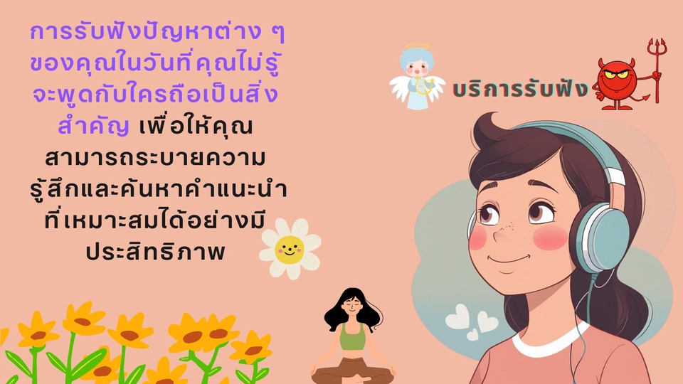 "บริการรับฟังอย่างเข้าอกเข้าใจ" 🧡 รายละเอียดบริการ: บริการรับฟังปัญหาอย่างเข้าใจ โดยไม่ตัดสิน หากคุณรู้สึกโดดเดี่ยว อึดอัด หรือไม่มีใครให้พูดด้วยในช่วงเวลาที่ยากลำบาก — เราพร้อมเป็นพื้นที่ปลอดภัยให้คุณได้พูดทุกอย่างอย่างสบายใจ หากคุณอยากระบายความในใจที่ไม่เคยมีใครรับคุณเลย เรายินดีที่จะรับฟังปัญหาหรือสิ่งที่คุณอยากเล่าหรือพูดให้ฟังได้ครับ