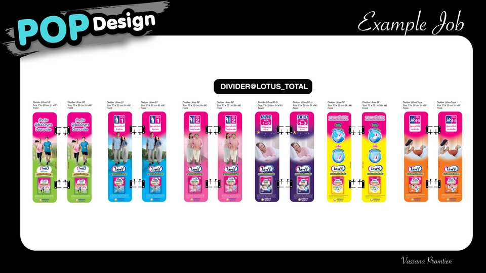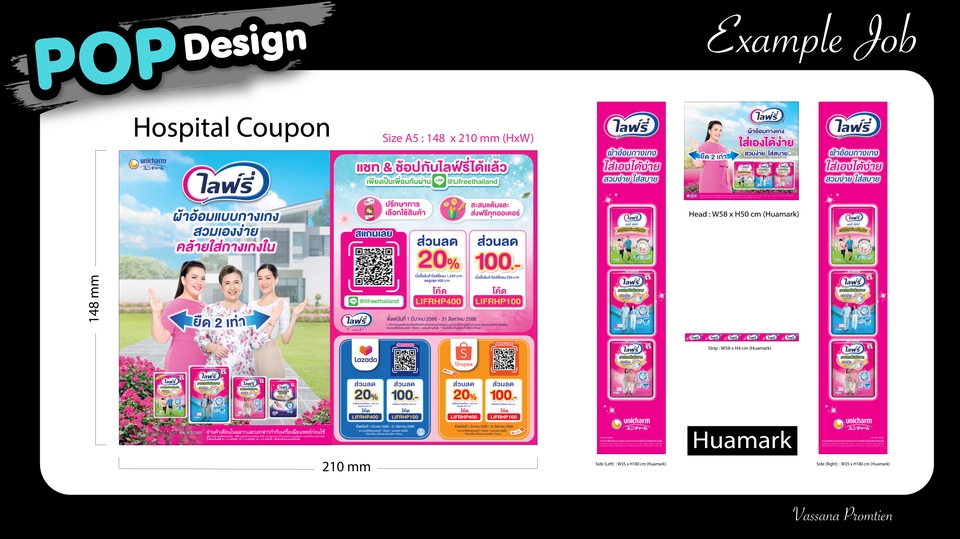 รับออกแบบ POP สื่อโฆษณา สื่อสิ่งพิมพ์ Offline หลากหลายประเภท เพื่อส่งเสริมการขายหน้าร้านค้าให้มีความโดเด่น สะดุดตา ตามความต้องการของลูกค้า ##ด้วยประสบการณ์ทำงานด้านกราฟิกมากกว่า 20 ปี ## อาทิเช่น Wobblur , Shelดtalker , Sale Book, Sale Manual, Catalog, โบชัวร์, Menu,Divider, Hanging, Shelf Display, Stand Display, Billboard, Roll Up, BackDrop, Kiosk และอื่นๆ สอบถามเพิ่มเติมได้ค่ะ รายละเอียดการทำงาน 1. รับบรีฟจากลูกค้า โดยลูกค้าต้องแจ้งความต้องการให้ชัดเจน * สิ่งที่ลูกค้าต้องเตรียม * - Brand CI / Logo - Concept / Mood-Tone/ Theme - ส่งไฟล์จำเป็นต้องใช้ภายในชิ้นงาน - รายละเอียดข้อความ Key Message ต่างๆ - ส่ง Refernce(ตัวอย่าง) แนวทางงานที่ต้องการ - ขนาดของชิ้นงาน 2. ส่งงานตามเวลาที่ตกลงกัน และสามารถปรับแก้ไขได้จากโครงงานเดิม ไม่เกิน 3 ครั้ง 3. สรุปปิดงาน ส่งมอบงานให้ลูกค้า