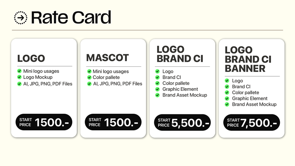 รับออกแบบโลโก้สไตล์ Geometric, Minimal, Modern, Abstract, Monogram - โปรแกรมที่ใช้ Adobe Illustrator CC **Style - Minimal logo, Abstract modern logo, Monogram logo และ Typo/Wordmark logo (ตรวจสอบสไตล์งานและสอบถามก่อนว่าจ้าง) ***สำหรับ Logo บรีฟที่ลูกค้าต้องเตรียมให้ 1. ชื่อแบรนด์ สโลแกน 2. ที่มาของแบรนด์ (คาแรคเตอร์แบรนด์) 3. กลุ่มเป้าหมาย 4. Mood and Tone (สี, ฟอนต์ที่ต้องการ) 5. สไตล์ของ logo 6. ส่วนประกอบใน logo 7. ระยะเวลา ระบุวันที่ให้ชัดเจน (Deadline) 8. Reference ตัวอย่างที่สนใจ (***หากถึงขั้นตอนที่ดราฟท์โลโก้ใน Ai แล้ว จะไม่มีการขอรื้อโลโก้ทำใหม่นอกเหนือจากสเก็ตช์ขาว-ดำที่ตกลงกันไว้***) ขั้นตอนการทำงาน 1. รับบรีฟงานพร้อมรายละเอียดงานที่ต้องทำและส่งใบเสนอราคา 2. ส่งสเก็ตช์ (ขาว-ดำ) ลูกค้าเลือกมา 2 แบบ หากยังไม่มีแบบที่พอใจสามารถขอให้สเก็ตช์เพิ่มได้ 3. ส่งสเก็ตช์จากโปรแกรม (Ai) ลูกค้าเลือกมา 2 แบบ ขั้นตอนนี้ไม่มีการขอรื้องานทำใหม่นอกเหนือจากสเก็ตช์ที่ตกลงกันไว้ 4. ส่งโลโก้ 90% ลูกค้าเลือกมา 1 แบบ ขั้นตอนนี้ไม่มีการขอแก้งานทำใหม่นอกเหนือจากสเก็ตช์ที่ตกลงกันไว้ 5. ส่งโลโก้สมบูรณ์ 100% ไม่มีการแก้ไขอีก 6. ในขั้นตอนที่ 3 และ 4 ลูกค้าสามารถขอแก้ไขได้รวม 3 ครั้ง สิ่งที่ขอแก้ได้คือ สี, ตำแหน่งการจัดวาง, ขนาด, ความหนา-บางของตัวอักษรหรือรูปโลโก้ 7. ขอแก้เกิน 3 ครั้งคิดจุดละ 50 หากจุดที่แก้มีรายละเอียดมากคิดจุดละ 100
