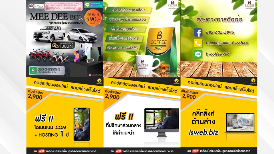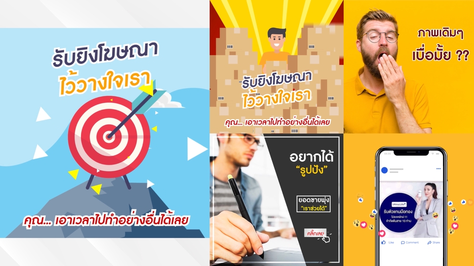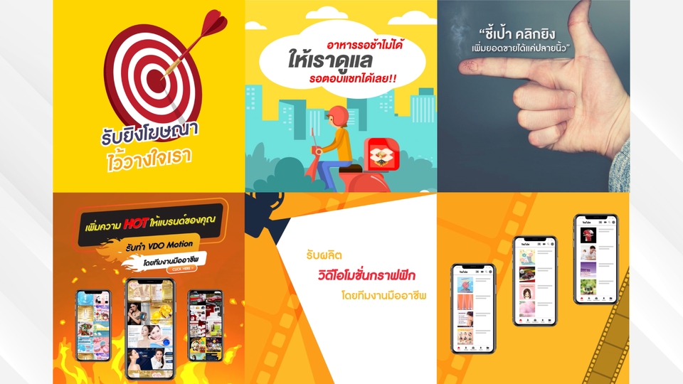 !!! สร้างความแตกต่างให้กับธุรกิจของคุณ !!!! รับออกแบบงานเกี่ยวกับ - ออกแบบหน้าปก facebook/IG/LINE - แบนเนอร์ลงโซเชียล Facebook / IG / Web site etc. - ออกแบบภาพโปรโมทโพสท์บน Facebook / IG / Web site etc. - ออกแบบวิดีโอโปรโมทสินค้า Facebook / IG / Web site etc. - Gif วีดีโอ ภาพเคลื่อนไหว รายละเอียดราคาเพิ่มเติม 1. หากมีการขอ project file คิดเพิ่ม 500-1000 บาท ตามจำนวนข้อมูลงาน 2. ราคางานอาจะมีการเปลี่ยนแปลง ขึ้นอยู่กับความยาก - ง่ายของงาน ตัวอย่างผลงาน Video : https://www.youtube.com/playlist?list=PLvrkOVEFtZbZHSqGPXAT8NTfBO7AOZKBw Gif file : https://drive.google.com/open?id=1XZa9CnOEaQM2SE6dqg4IreX1j9-qI832 ขั้นตอนการทำงาน 1. ลูกค้าบรีฟรายละเอียดเกี่ยวกับงานที่ต้องการ / ตัวอย่างงานที่ต้องการ (ถ้ามี) / เสนอราคา / ตกลงระยะเวลาการทำงาน 2. ส่งใบเสนอราคา 3. ลูกค้าส่งข้อมูลงานที่ต้องการใส่ใน Banner / Ads เช่น โลโก้, ภาพสินค้า หรือข้อความต่างๆ ที่ต้องการใส่ในชิ้นงาน 4. เริ่มการทำงาน 5. ส่งงานให้ลูกค้าดู และทำการแก้ไขงาน (แก้ไขได้ทั้งหมด 3 ครั้ง) 6. ส่งมอบงานให้ลูกค้า ผ่านทาง Google drive หรือช่องทางตามที่ลูกค้าต้องการ
