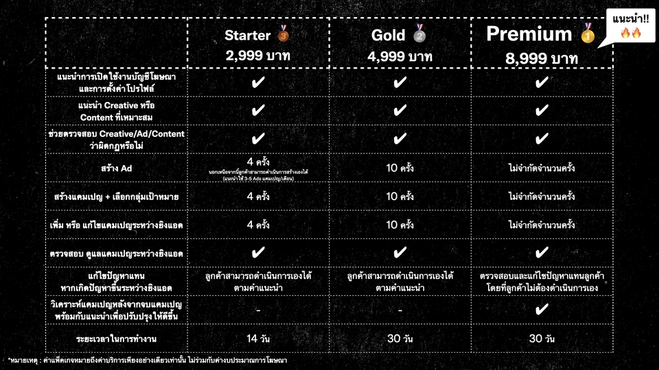 Premium 🥇(แพ็คเกจสำหรับธุจกิจขนาดใหญ่ หรือผู้ที่ต้องการทำโฆษณาอย่างต่อเนื่อง)