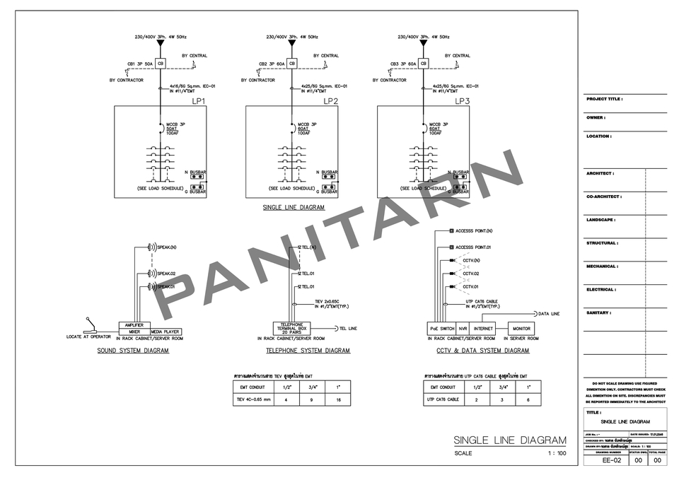 "ระบบไฟฟ้าคือหัวใจของที่อยู่อาศัย" หากมีการออกแบบระบบไฟฟ้าที่ดี ช่างจะสามารถติดตั้งระบบไฟฟ้าได้อย่างถูกต้อง เจ้าของสามารถควบคุมวางแผนงบประมาณได้ และมั่นใจได้ว่าบ้านหรืออาคารของท่านจะมีระบบไฟฟ้าที่มีความปลอดภัย ครบถ้วน และใช้งานได้อย่างลงตัว ผมมีประสบการณ์ทั้งในบทบาทผู้ออกแบบ ผู้รับเหมา และผู้ตรวจสอบระบบไฟฟ้า (ประสบการณ์งานออกแบบ 300 กว่างาน) จึงเข้าใจเนื้องานเป็นอย่างดี ลูกค้าไว้วางใจ ส่งมอบงานที่ได้มาตรฐานในราคาที่เหมาะสม บริการของผม ได้แก่ -ออกแบบระบบไฟฟ้า บ้าน อาคาร สำนักงาน พื้นที่เช่า หอพัก โรงแรม โรงงาน ฯลฯ -เขียนแบบไฟฟ้า คำนวณโหลด แสงสว่าง ปลั๊ก แอร์ สื่อสาร Fire Alarm และล่อฟ้า ฯลฯ -ออกแบบหม้อแปลง ตู้ MDB, Single Line, Riser Diagram -ถอดแบบ ประมาณราคา ทำ BOQ -ออกแบบระบบ Solar Rooftop พร้อมเซ็นรับรองเพื่อยื่นการไฟฟ้า บริการนี้เหมาะกับใคร -เจ้าของบ้าน สถาปนิก ผู้รับเหมา หรือผู้เช่าพื้นที่ ที่ต้องการวิศวกรช่วยออกแบบระบบไฟฟ้า สิ่งที่ท่านจะได้รับ -แบบกระดาษ (A3, A2, A1 ตามตกลง) -ไฟล์ PDF และไฟล์ CAD (.DWG) ค่าบริการ -ตกลงกันก่อนเริ่มงาน ขั้นตอนการทำงาน 1. ลูกค้าส่งขอมูลเบื้องต้น เพื่อใช้ประกอบการเสนอราคา 2. ผมเสนอราคา พร้อมระบุขอบเขตงานทั้งหมด 3. ลูกค้าตรวจงาน และสามารถขอแก้ไขได้ไม่เกิน 3 ครั้ง หรือไม่เกิน 30% ของเนื้องาน 4. หากไม่มีการแก้ไข ถือว่างานเสร็จสมบูรณ์