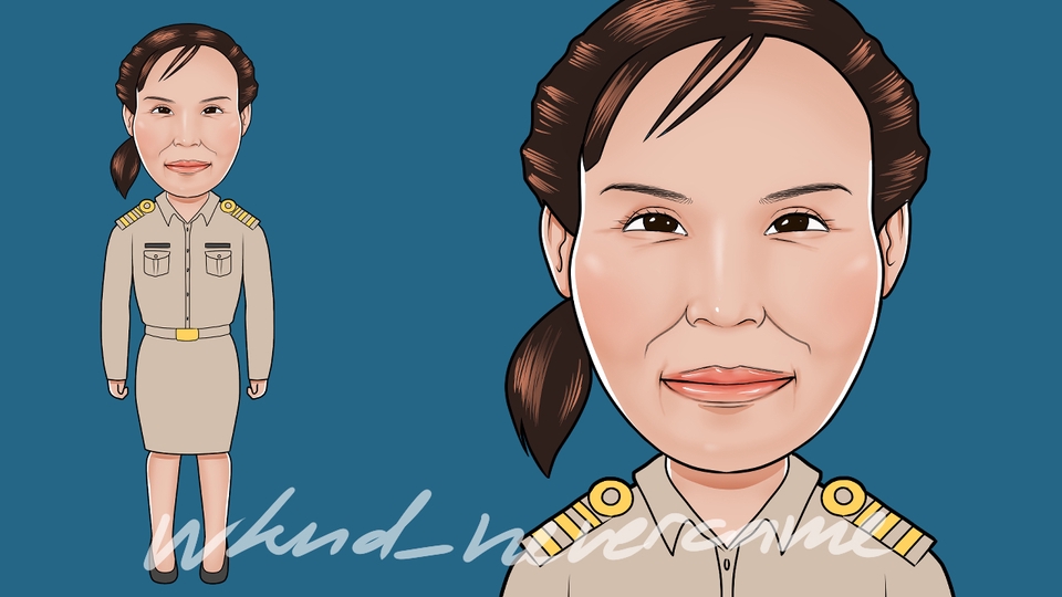 ปัจจุบันทำงานเป็น Freelance ภาพประกอบ (part-time) ได้มีโอกาสวาดภาพล้อเลียนบุคคลในงานเกษียณอายุราชการของบุคลากร เป็นของที่ระลึกมอบให้กับผู้เกษียณ เป็นภาพ Digital สามารถส่งปริ้นได้ ขั้นตอนการทำงาน 1. ลูกค้าส่งภาพบุคคล/สัตว์เลี้ยง/ท่าทาง ให้ใกล้เคียงกับงานที่ต้องการ 2. ระบุประเภทที่ต้องการ(เช่น งาน Digital หรืองานพิมพ์) /ขนาด(ไม่เกินขนาดA2) /สกุลไฟล์(JPEG, PNG) 3. ทำการสเก็ตซ์แบบให้ลูกค้า(แบบขาวดำและลงสีคร่าวๆ) จนงานลงตัวมากที่สุด 4. ทำการตัดเส้น /ในขั้นตอนนี้ สามารถแก้ไขได้ (มากสุด 2 ครั้ง) 5. ทำการลงสี /ขั้นตอนนี้ สามารถแก้ไขโทนสีได้ และแก้ไขเส้นได้เล็กน้อย (มากสุด 2 ครั้ง) 6. เก็บรายละเอียดสุดท้าย /ให้ลูกค้าเช็คความเรียบร้อย รายละเอียดงานครบถ้วน 7. ส่งงานตามที่ลูกค้าได้แจ้งรายละเอียดไว้