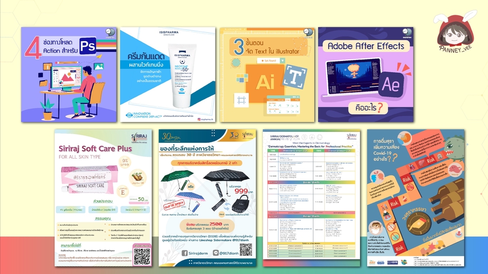 ออกแบบภาพแบนเนอร์/Infographic Artwork/Online content/วาดภาพเวกเตอร์ ต่างๆ ใช้สำหรับการขายผ่านทางช่องทางออนไลน์ และงานสิ่งพิมพ์ สามารถแจ้งรายละเอียกเพื่อออกแบบให้ตรงกับการใช้งานและความพึงพอใจของลูกค้า ขั้นตอนการทำงาน 1. บรีฟรายละเอียดของงานและทำข้อตกลงเกี่ยวกับการแก้งานทั้งหมดจะแก้ไม่เกิน 3พร้อมแนบตัวอย่าง(ถ้ามี) 2. เมื่อส่งมอบชิ้นงานให้ลูกค้า สามารถแก้ไขงานได้ 3 ครั้ง+การแก้ไขเพิ่มเติมครั้งละ100 3. เมื่องานเสร็จส่งไฟล์งานเป็น .JPG /.PNG/.PDF -ถ้าต้องการไฟล์.ai หรือ .eps +เพิ่มไฟล์ละ 300฿ 4. ระยะเวลาทำงานขึ้นอยู่กับการติดต่อสื่อสารกับทางลูกค้า และความยากง่ายของชิ้นงาน - งานทั่วไป นับตั้งแต่วันที่ระบบอนุมัติ 2-3 วัน