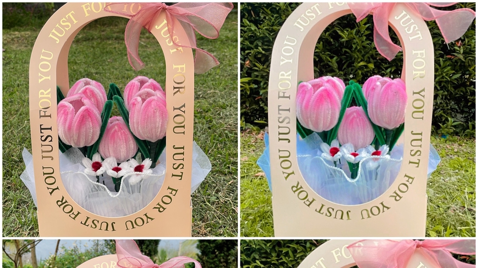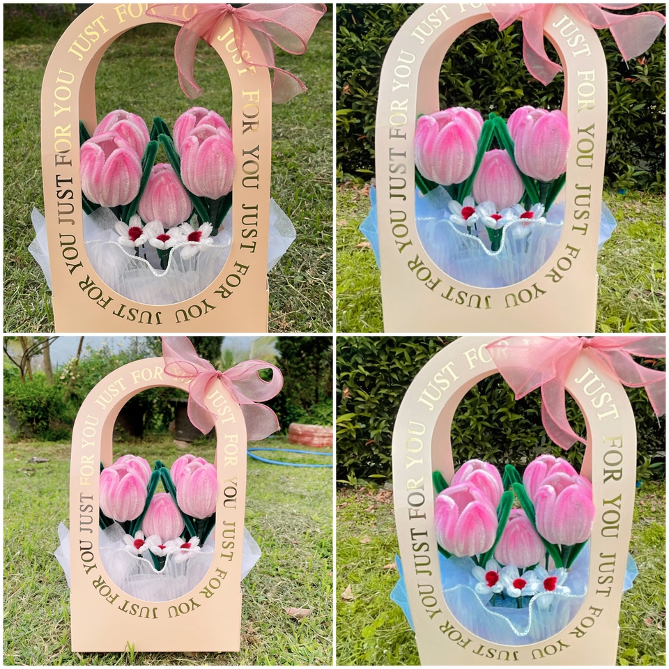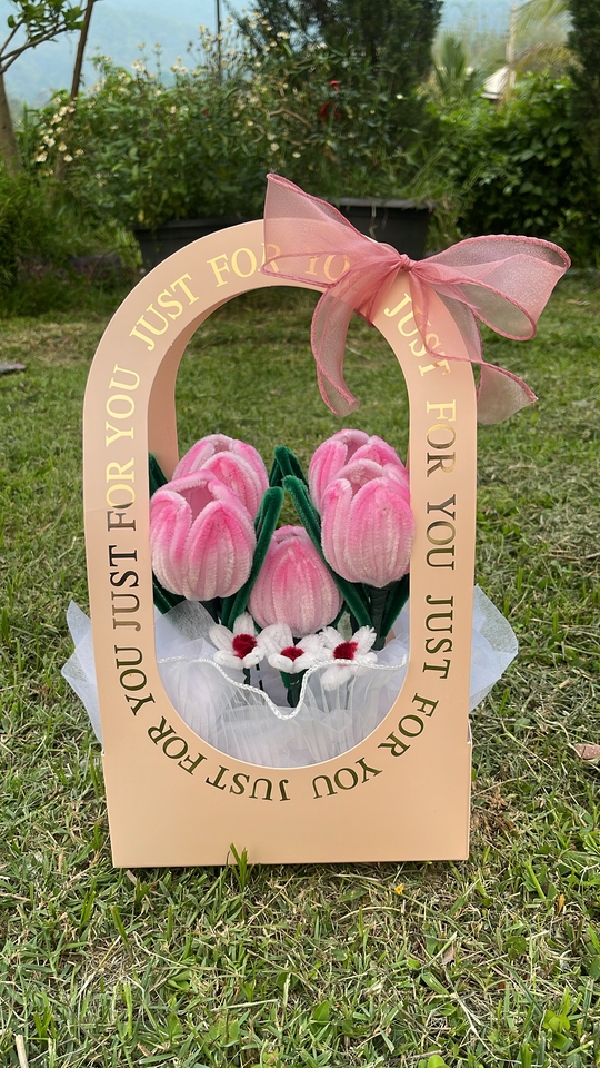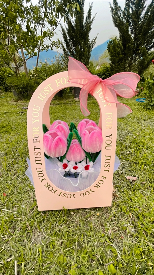 กระเช้าดอกไม้ลวดกำมะหยี่ ดอกทิวลิป สามารถเปลี่ยนสีดอกไม้ได้ค่ะ เก็บได้นาน สีไม่ซีด