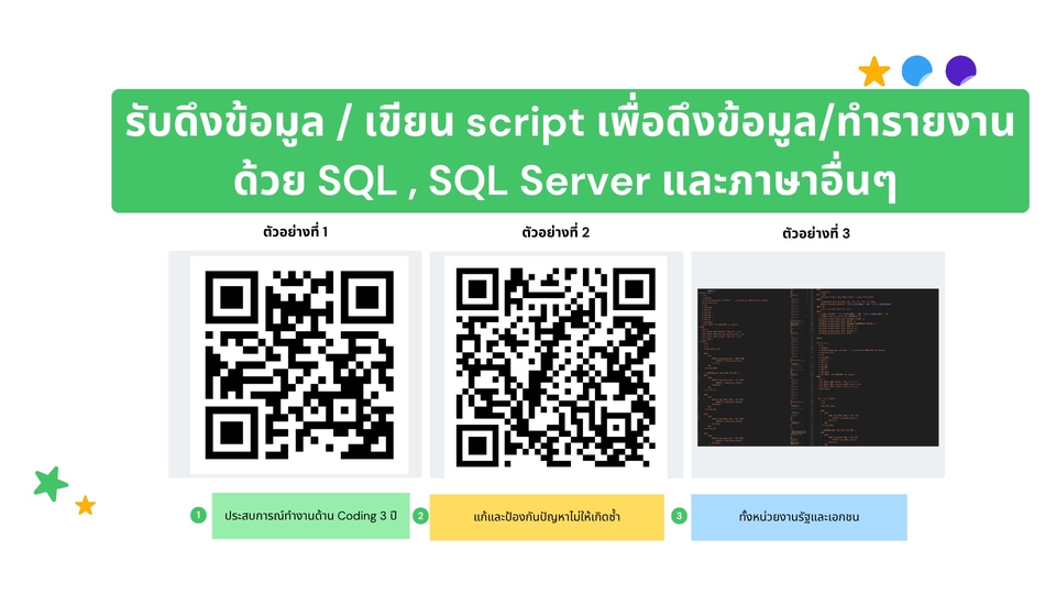 รับดึงข้อมูล / เขียน script เพื่อดึงข้อมูล/ทำรายงาน ด้วย SQL , SQL Server และอื่นๆ