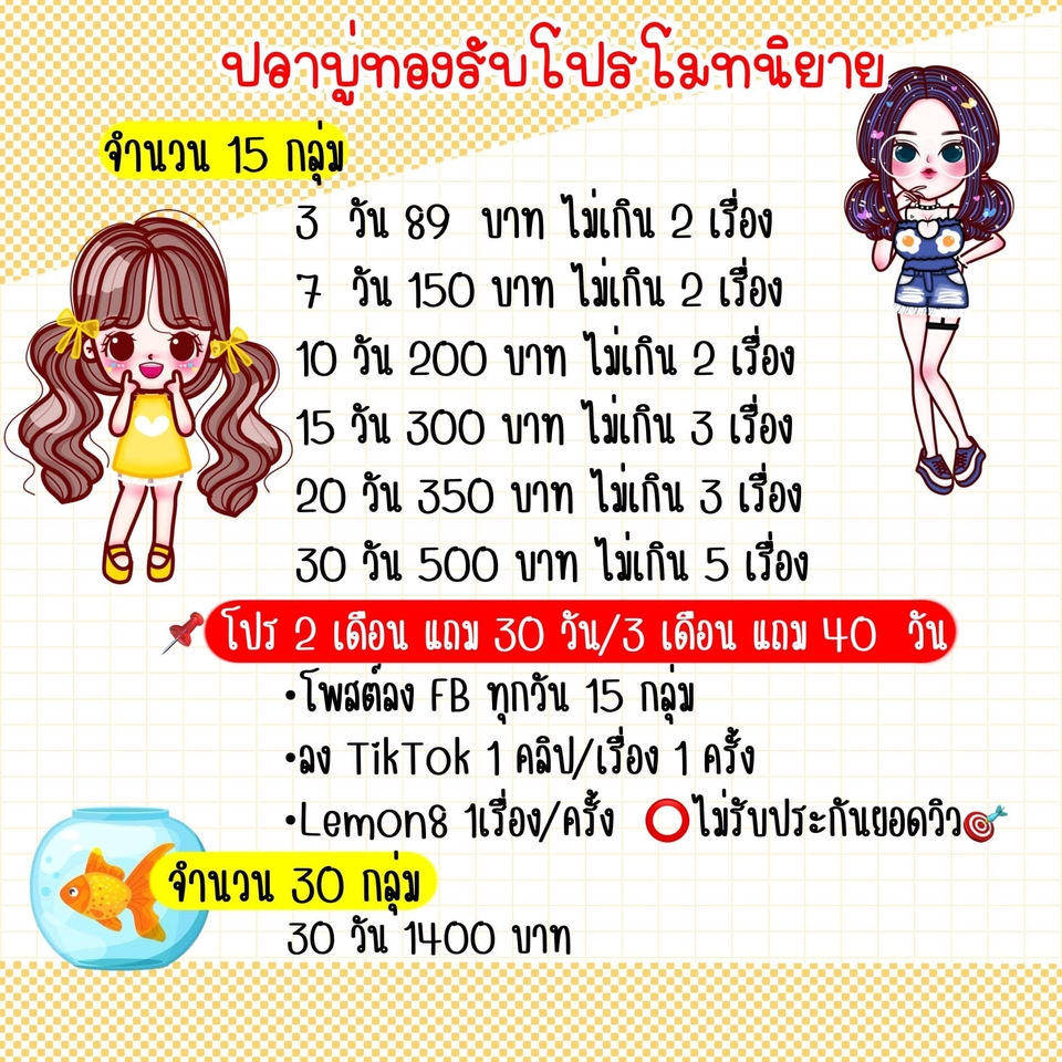 ฿500โปรโมท กลุ่ม Facebook 15 กลุ่ม ทุกวัน ตต. จำนวน 1 เรื่อง Lemon8 จำนวน 1 เรื่อง