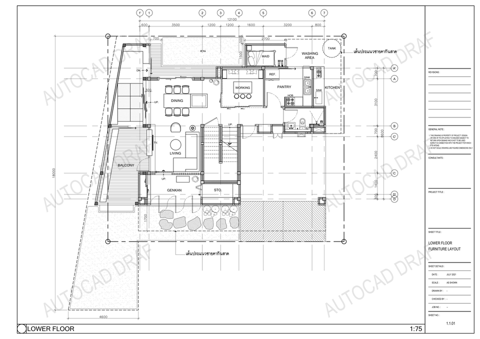 1. รับดราฟแบบตามผู้ออกแบบ 2. ราคาเริ่มต้น แผ่นละ 500 บาท แล้วแต่ความยากง่ายและสไตล์งาน 3. เขียนแบบ แปลน รูปต้าน รูปตัด ประตู typ.detail, built-in furniture ขั้นตอนการทำงาน 1. รับข้อมูลและรายละอียดจากลูกค้า เช่น แบบ PRESENT วัสดุที่ใช้ในการตกแต่ง 2. ดราฟแบบตามที่ลูกค้าต้องเช่น แปลน รูปด้าน รูปตัด 3. ส่งแบบให้ลูกค้าตรวจความถูกต้อง 4. แก้ไขงานได้ไม่เกิน 3 ครั้ง