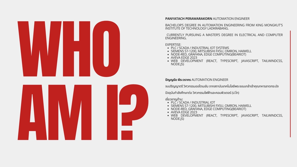 ทำงานแผนกวิศวกรออโตเมชั่น เกี่ยวกับPLC, SCADA, IOT, web-application