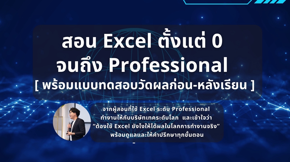 📊 แพ็กเกจสอน Excel – ตั้งแต่พื้นฐาน 0 จนถึงระดับ Professional (มีแบบฝึกหัด Pre-test/ Post- Test เพื่อวัดระดับ Skill จากการเรียน) และสอนจนกว่าจะทำได้! ✅ เรียนการใช้ Microsoft Excel/ google sheet ตั้งแต่พื้นฐาน ✅ สอนการผูกสูตรที่ใช้บ่อย [Vlookup, Xlookup, VBA, Query, IF, Sumif, Filter, VStack, HStack และอื่นๆที่ใช้ในการทำงานในตำแหน่งนั้นๆ ] ✅ ฝึกใช้กับไฟล์งานจริง มีเวิร์กชีตและเทมเพลตให้ใช้ฟรี ✅ ให้คำปรึกษาตลอดการเรียน 💸 ราคา เรียนรายชั่วโมง เริ่มต้น 450 บาท/ชม. ขั้นต่ำ 2 ชั่วโมง ให้คำแนะนำตามระดับความเชี่ยวชาญ ไม่ใช้ศัพท์เข้าใจยาก เหมาะกับใครบ้าง? 👤 วัยทำงานที่อยากเพิ่มทักษะ Excel เพื่อเพิ่มประสิทธิภาพในการทำงาน 👤 First Jobber ที่อยากมี Skill การจัดการข้อมูลติดตัว 👤 คนที่อยาก up skill Excel ให้มืออาชีพ ใช้ในการทำงานได้อย่าง Professional ผูกสูตรได้อย่างแม่นยำ