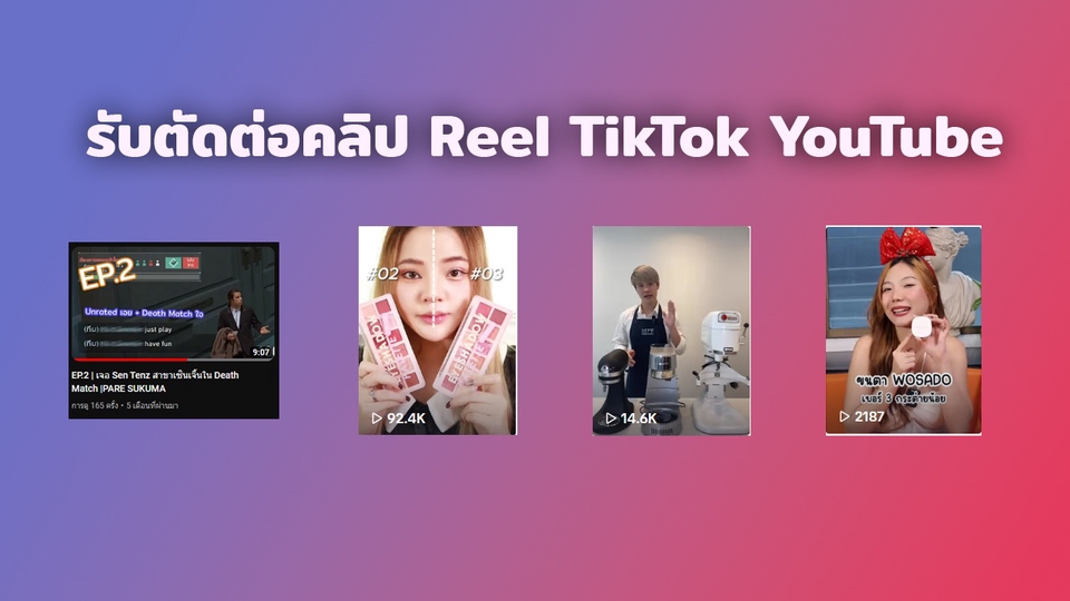 ฿1,200คลิปตัดต่อตามที่ลูกค้าบรีฟ ใช้เวลาไม่นานมาก ขึ้นอยู่ที่คอนเท้นว่ามากหรือน้อย **แก้งานได้แค่2ครั้งค่ะ**