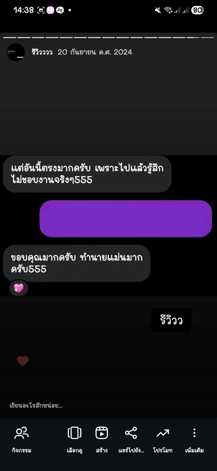 ทำได้หลากหลายอย่าง หากสนใจให้ช่วยงาน สามารถทำได้เต็มที่ มีความรับผิดชอบ ตรงต่อเวลา