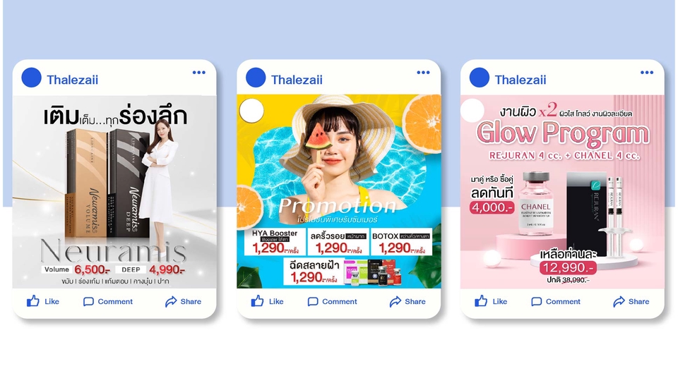 รับออกแบบแบนเนอร์ โฆษณาสื่อออนไลน์ทุกช่องทาง (FB/Line/IG) งานหลากหลายสไตล์ไม่ว่าจะเป็นแบบมินิมอล วัยรุ่นสดใส เรียบหรู สามารถทำได้ทุกแบบตามที่ลูกค้าต้องการค่ะ (งานภาพเท่านั้น) ขั้นตอนการทำงาน 1. 1.รับบรีฟงานจากลูกค้า เช่น โทนสี,แนวทางของภาพ,ข้อความที่ลูกค้าต้องการใส่ในภาพ (หากลูกค้ามีเรฟเฟอร์เรนสามารถบอกหรือให้ดูเป็นตัวอย่างได้ค่ะ) 2. 2.เมื่อรับบรีฟแล้วจะดำเนินการทำชิ้นงาน ภายใน 1-2วัน 3. 3.ส่งงานให้ลูกค้าตรวจสอบและทำการแก้ไขได้สูงสุด 3 ครั้ง 4. 4.ตรวจสอบงานครั้งสุดท้ายและส่งมอบงาน (ลูกค้าจะได้ทั้งไฟล์ jpg./ai.)