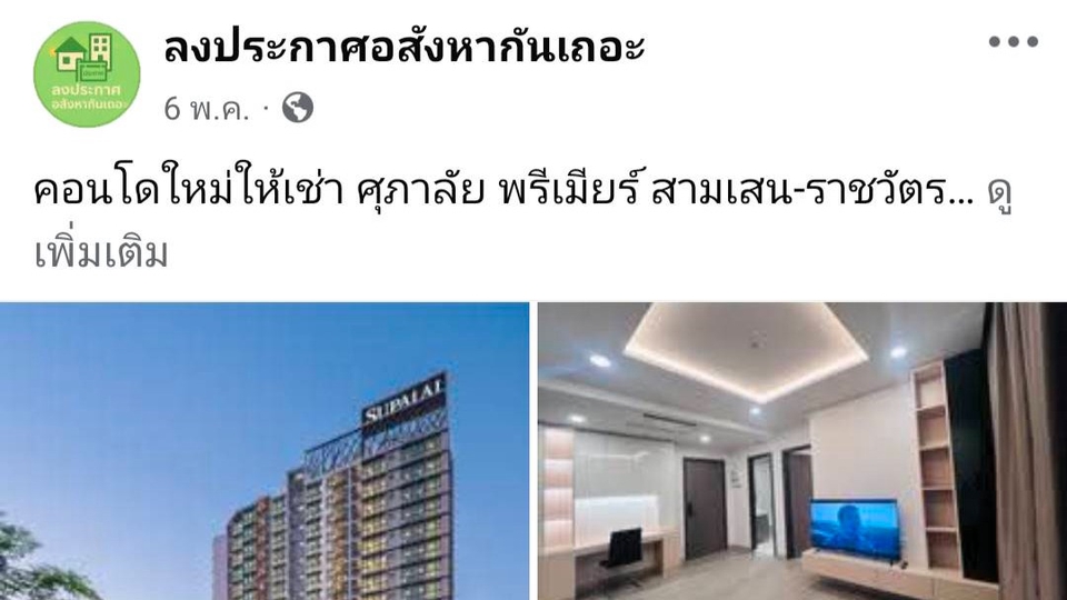 ฿1,350ลงประกาศเร็บไชต์อสังหาริมทรัพย์และกลุ่มเฟสบุ๊ครวม100โพสต์ พร้อมเลื่อนประกาศเป็นเวลา 1เดือน