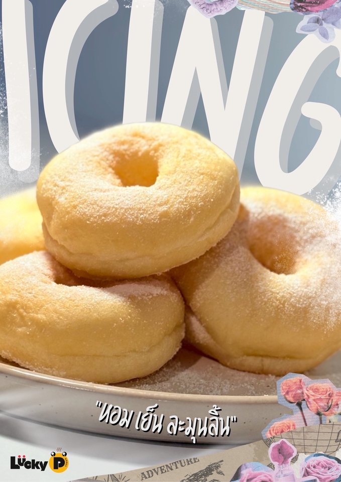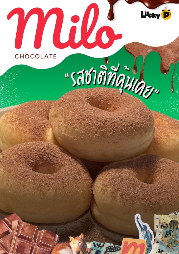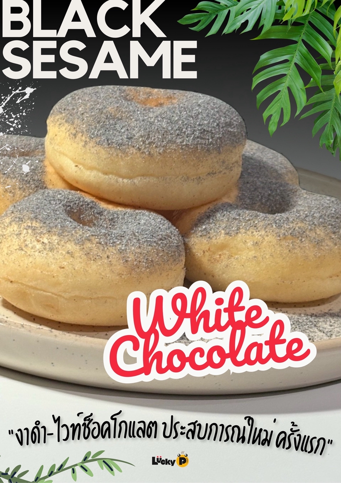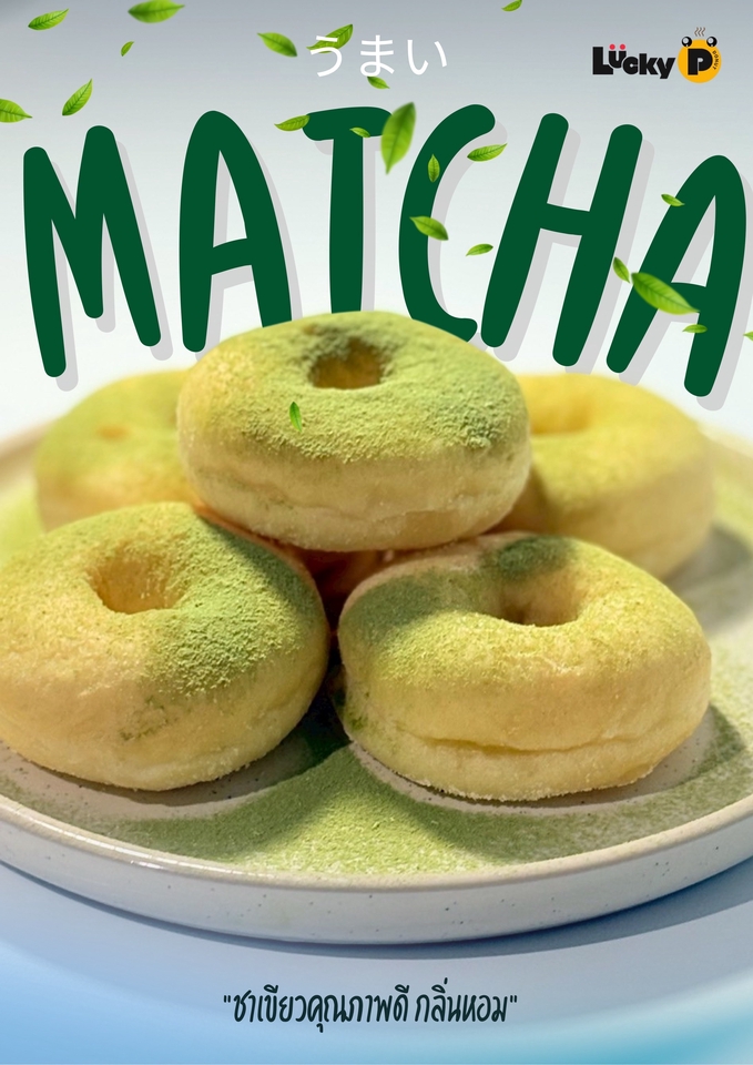 สินค้าเป็นโดนัทสไตล์ญี่ปุ่น มีความนุ่ม หอม และค่อนข้างหวานน้อย มีผงโรยให้เลือก 5 รสชาติ 1. น้ำตาลไอซิ่ง 2. ชาเขียว 3. ไมโล 4. ไวท์ช็อกโกแลต-งาดำ 5. ไข่เค็ม