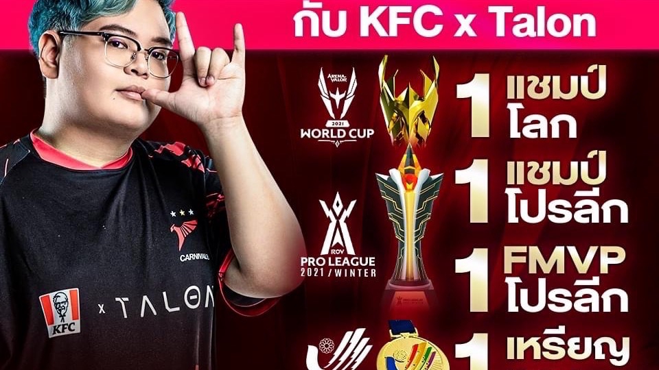 สอนเล่น ROV (Meta-BanPick-การเดินเกมทุกตำแหน่ง) ผลงาน 5 ปี แชมป์ AWC 2021 (แชมป์โลก) แชมป์ Rov Proleague 2021 Winter (แชมป์ประเทศ) เหรียญทอง Sea Games ครั้งที่ 31 ณ ประเทศเวียดนาม(ROV) อันดับ 3 RPL 2021 Summer (Talon) อันดับ 3 RPL 2022 Winter ( Talon) อันดับ 4 RPL 2023 Summer ( Earena) อันดับ 2 RPL 2022 Summer ( Talon) FMVP RPL 2021 Winter (ผู้เล่นทรงคุณค่าของไทย) Best Killer RPL 2022 Summer