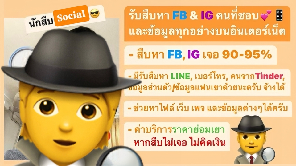 🕵️ นักสืบ FB, IG ของคนที่ชอบ & ค้นข้อมูลบนอินเตอร์เน็ต (สืบเจอ -> ค่อยจ่ายเงิน)