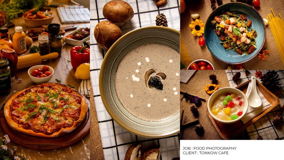- รับถ่ายภาพอาหาร สำหรับงานโฆษณา งานขาย ในสื่อ Social media (Facebook, Insagram, Line,ฯลฯ) สื่อสิ่งพิมพ์ นิตยสาร หนังสือพิมพ์ โบชัวร์ แคตตาล็อก Shopee lazada - คิดค่าเดินทางตามจริง หากเป็นการถ่ายนอกสถานที่ - สอบถามได้ตลอดเวลาจะรีบตอบกลับให้ไวที่สุด ขั้นตอนการทำงาน 1. คุยรายละเอียดต่างๆของงาน เช่น moon & tone ที่ลูกค้าต้องการ, จุดประสงค์ในการนำงานไปใช้ 2. ชำระเงินผ่านระบบเพื่อล็อกคิวงานเเละส่งสินค้าที่ต้องการให้ถ่ายมาเพื่อลงคิวจัดถ่าย