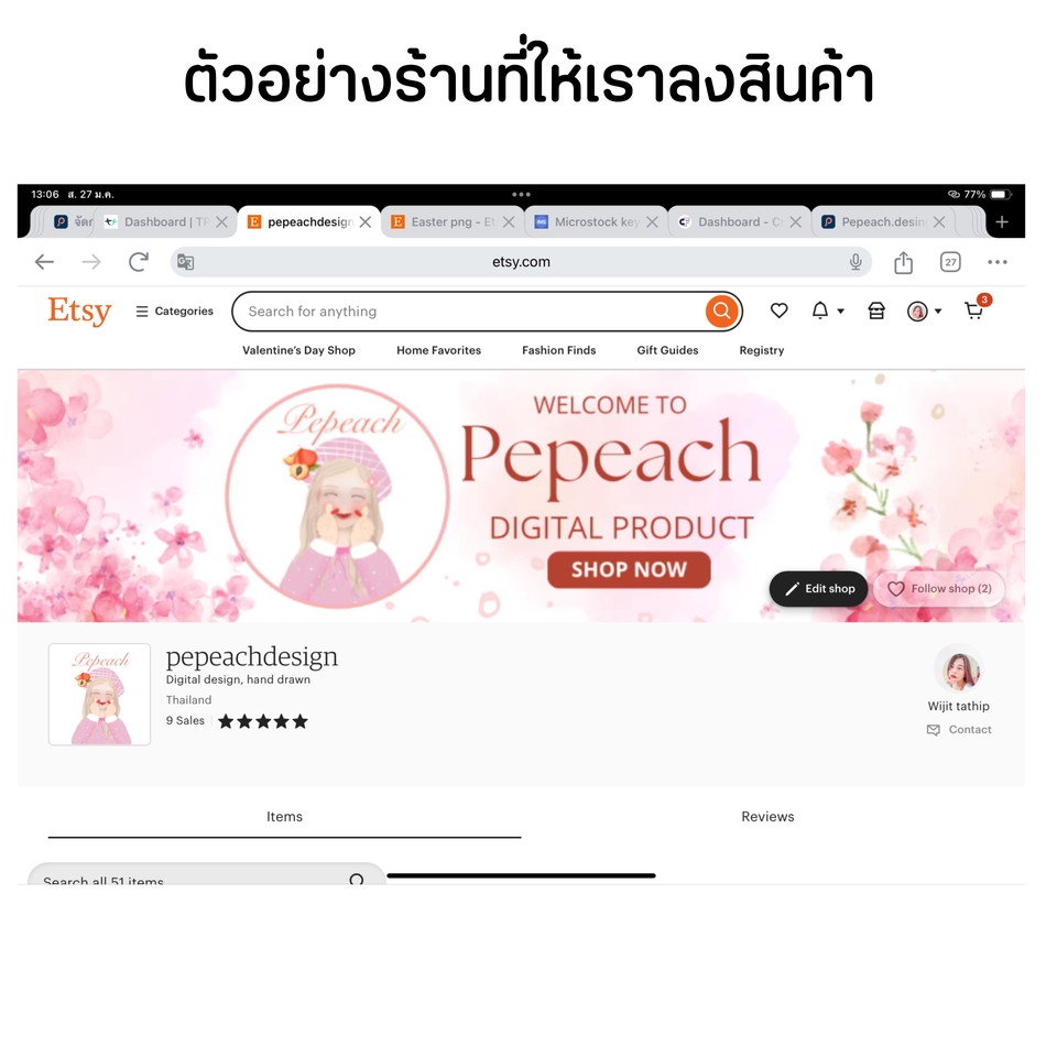 ฿800ลงรายการสินค้า บนเว็บ EBAY 5 รายการ หรือ เลือกลงรายการสินค้า บนเว็บ Etsy 5 รายการ เลือกได้ว่าจะลงเว็บไหน