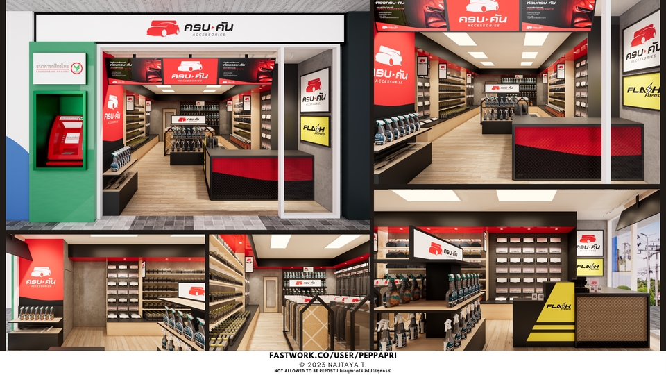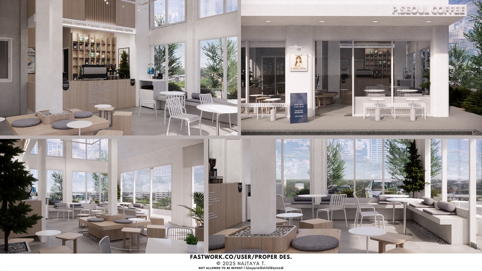 รับออกแบบภายใน ร้านค้า (Shop) , บูธ (Booth) , ร้านค้าขนาดเล็ก (Kiosk) โดยสิ่งที่สามารถทำให้ลูกค้าได้ มีดังนี้ - ขึ้นแบบ 3มิติ (3D Modeling) + เรนเดอร์ภาพเสมือนจริง (Rendering) ภาพทัศนียภาพภายใน (Perspective) - ออกแบบภายใน วางแบบผังเฟอร์นิเจอร์ (Furniture Plan) - หากต้องการแบบสำหรับก่อสร้าง (Drawing) มีบริการเขียนแบบเพิ่มเติม - ราคาสามารถตกลงกันได้ สามารถสอบถามราคาได้ก่อนค่ะประกอบการตัดสินใจ และจะทำการตกลงราคาก่อนเริ่มดำเนินการ ลูกค้าสามารถแก้งานได้ 2-3 ครั้งได้ในขอบเขตของงานเดิม [สำคัญ : ส่งงานดราฟแรกภายใน 3-5 วันหลังจากตกลงงาน หลังจากนั้นจะมีเวลาให้คุณลูกค้าแก้งาน 3-5 ครั้ง ภายในระยะเวลา 21-28 วัน ตามแต่ละแพ็กเกจ] ** รูปภาพประกอบ (Graphic) ขออนุญาตไม่รับออกแบบ แต่ลูกค้าสามารถส่งมาให้ใช้ประกอบในแบบ 3D Model ได้ ** เนื่องจากฟรีแลนซ์มีงานประจำ จึงไม่สะดวกคอล/โทรคุย/conference ขออภัยด้วยค่ะ ** ขั้นตอนการทำงาน 1. รับบรีฟและคุยรายละเอียด ตกลงงานกับลูกค้า ในเรื่องของขนาดพื้นที่ (Area Sizing), สไตล์หรือแนวของงาน (Style, Mood&Tone) 2. ลงมือขึ้นแบบ 3D Model จะเรนเดอร์ภาพเสมือนจริง และส่งให้ลูกค้าดูหากมีการปรับปรุงแก้ไข 3. ดำเนินการแก้ไขงานหลังจากได้รับ feedback โดยสามารถแก้ไขได้จำนวนครั้งตามตกลง 4. เรนเดอร์ภาพเสมือนจริง (Perspective) และเขียนแบบแปลน ก่อนนำส่งลูกค้า 5. ส่งงานไฟล์ตามที่ตกลง ผ่าน Google Drive