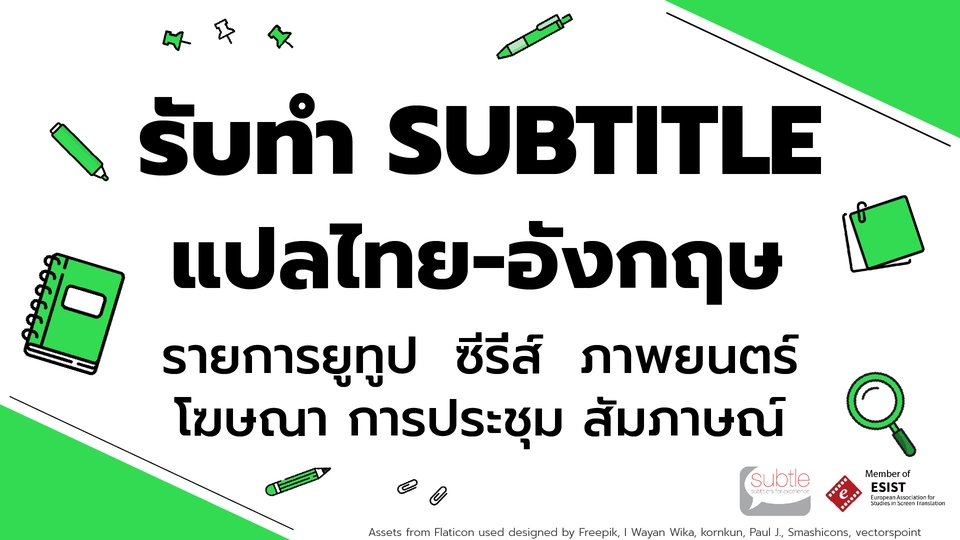 ทำซับไตเติลแปลคลิป/รายการทีวี/ยูทูป/ซี่รี่ส์ (🌟IELTS 7.5, TOEIC 985, ผ่านการอบรมทำซับ)