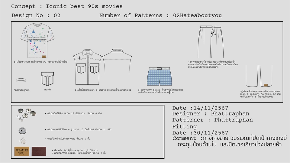ออกแบบชุด รับวาด fashion flat illustration เป็นชิ้นเสื้อผ้าทั้งด้านหน้าและด้านหลังที่เห็นรายละเอียดถึงตะเข็บด้าย เป็นการSketch เสื้อผ้าจากรูปออกมาเป็นภาพวาดมาตรฐานลูกค้าจะได้ตาราง flat sketch และไฟล์รูปเสื้อผ้าที่ไม่ใช่แบบตาราง ตามตัวอย่างภาพ ซึ่งสามารถนำไปคุยกับช่างตัดเย็บหรือเอาไปใช้ใน Presentation ได้ ขั้นตอนการทำงาน 1. รับรายระเอียดในการทำงาน รบกวนลูกค้าระบุรายละเแียดดังนี้ 2. แจ้งประเภทเสื้อผ้าที่ต้องการออกแบบ เช่น เสื้อเชิ้ต กระโปรง กางเกงยีนส์ เสื้อยืดคอกลม 3. ระบุวัสดุที่ต้องการจะใช้ในการออกแบบและส่วนที่ต้องการลงรายละเอียดเช่นวิธีการตัดเย็บ 4. หากเลือกเป็นภาพสี แจ้งสีแต่ละชุดและรายละเอียดของลายผ้าที่ต้องการออกแบบ