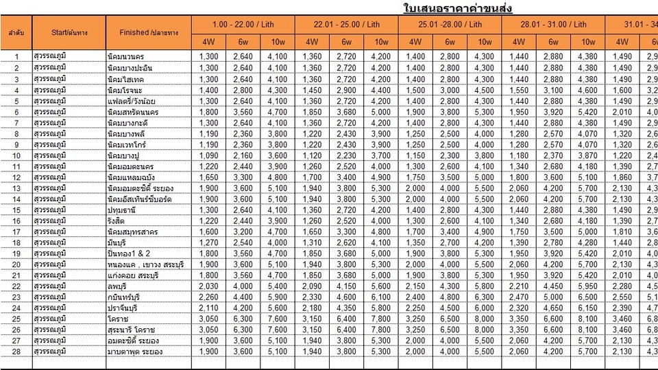 บริการของเรา -รับจัดทำใบเสนอราคาค่าขนส่ง ( Quotation) -คำนวณต้นทุนตามระยะทาง / ประเภทสินค้า -จัดทำเอกสารเป็นทางการ พร้อมส่งลูกค้าได้ทันที -ตรวจสอบ Billing ค่าขนส่ง -เช็คความถูกต้องของเรท ราคา และระยะทาง มีบริการขนส่งสินค้าทั่ว กรุงเทพและปริมณฑล -รถ 4 ล้อคอก,รถ 4 ล้อตู้ทึบ,รถเฮี๊ยบ (มีเครนยกสินค้า) รองรับงานขนส่งสินค้า:เครื่องจักร,สินค้าอุปโภคบริโภค,สินค้าพาเลท,งานย้ายโกดัง / ย้ายออฟฟิศ