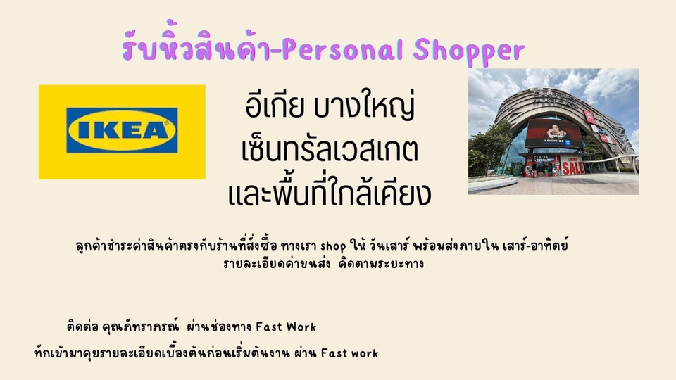 รับหิ้วสินค้าอีเกีย บางใหญ่ เซ็นทรัลเวสเกต และ พื้นที่ใกล้เคียง