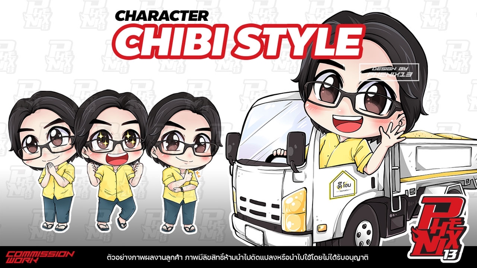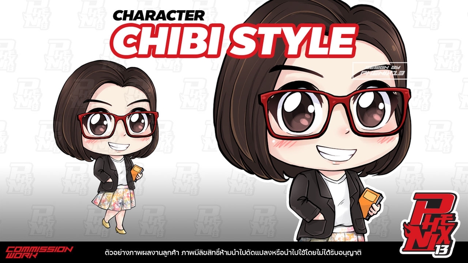 เปลี่ยนคุณหรือคนที่คุณชื่นชอบเป็นตัวการ์ตูนสุดน่ารัก~ SD/CHIBI คืออะไร? ก็คือตัวละครหัวโต ตาโต น่ารักๆ แบบในภาพตัวอย่างเลย สนใจลายเส้นแบบของเรา ติดต่อสอบถามรายละเอียดเพิ่มเติมได้ครับ ^w^ รายละเอียดราคาเพิ่มเติม - เนื่องจากมีงานประจำ จะใช้เวลาประมาณ 4-5 วัน หรือตามจำนวนคิวงาน หากไม่มีคิวสามารถทำให้ได้เลย สอบถามก่อนได้ - กรณีที่นำไปใช้ในเชิงพาณิชย์ บริษัท แบรนด์ ห้างร้าน เช่น ภาพประกอบหนังสือ , ที่คั่น , พวงกุญแจ จะคิดเพิ่มตามตกลง -ถ้าลูกค้ามีการตรวจหลายขั้นตอน หรือต้องส่งตรวจให้หลายคนแจ้งไว้ด้วยนะครับ จะได้เผื่อวันเสร็จงานในใบเสนอราคาครับ -เพื่อการทำงานที่ต่อเนื่อง ถ้ามีการส่งไฟล์งานให้ตรวจแล้วทางลูกค้ายังไม่ตอบกลับ ภาพใน 12 ชม ทางเราของอนุญาติโทรติดต่อเข้าไปนะครับ ขั้นตอนการทำงาน 1. -ลูกค้าส่งรายละเอียดข้อมูลตัวละคร รูปร่างหน้าตา เครื่องแต่งกาย ทรงผม และท่าประกอบที่ต้องการ (แนบรูปตัวอย่างด้วย เช่น อยากใส่ชุดแบบไหน) 2. -วาดแบบร่างสเก็ตส่งให้เช็ค (1-2 วัน) 3. -ตรวจ/ปรับแก้ (แก้ได้2ครั้ง) 4. -ส่งภาพลงสี ตรวจ/ปรับแก้ การแก้ในระดับเพิ่มเงา แก้เฉดสี และไม่มีผลกระทบต้องโครงสร้างโดยรวม (แก้ได้2ครั้ง ใช่เวลา 3-4 วัน) 5. -ชิ้นงานผ่าน ส่งงานจริง