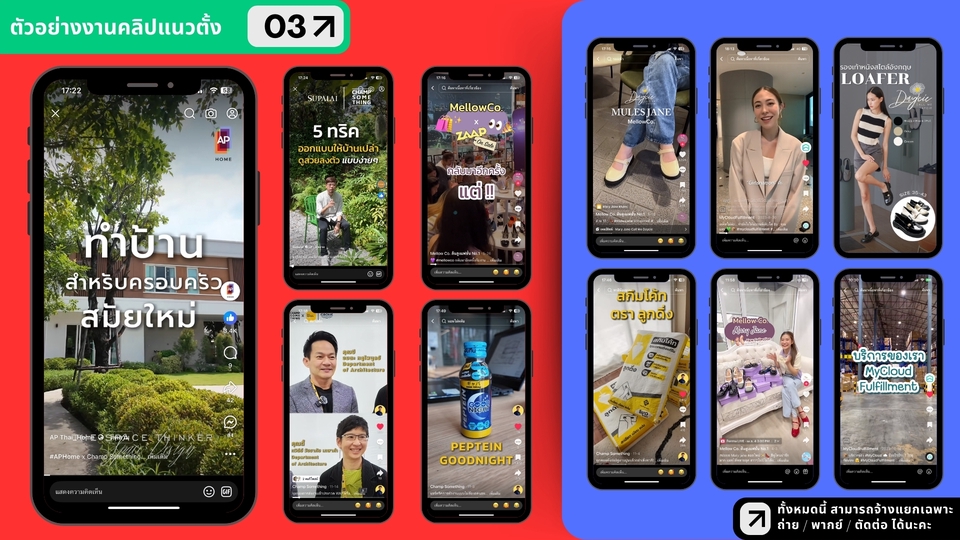 💜 ประสบการณ์การทำงานสาย Creative Content และ ตัดต่อ มากกว่า 4 ปี มีความรู้ความเข้าใจในแง่ของ Productions และ Marketing สามารถถ่ายทอดสื่อ Content เพื่อให้ตรงกลุ่มเป้าหมายได้อย่างชัดเจนและกระชับ 🎬 รับตัดต่อคลิปสั้น (แนวตั้ง 9:16) ทุกรูปแบบ ความยาวคลิปไม่เกิน 1-2 นาที TikTok, IG Reels , Facebook , Youtube สาย Vlog / รีวิวสินค้า / ท่องเที่ยว / สัมภาษณ์ / Podcast / คลิปให้ความรู้ / อสังหา / คลิปภาษาอังกฤษ ✍🏻 ขั้นตอนการทำงาน 1. สอบถาม พูดคุยและรับบรีฟ 2. ลูกค้าส่งไฟล์ Footage + Voiceover ผ่าน google drive 3. สามารถส่งตัวอย่าง Reference คลิปที่ต้องการเป็นแบบอย่างมาได้ 4. หากพุดคุยและได้ไฟล์ครบถ้วน สามารถเริ่มงานได้ทันทีค่ะ (ความละเอียดไฟล์ที่ได้รับ ขึ้นอยู่กับความละเอียดของ Footage ที่ลูกค้าส่งมาให้ตัดเลยค่ะ) ✅ เงื่อนไขในการทำงาน (ต่อ 1 คลิป) - ความยาวคลิปไม่เกิน 1-2 นาที - ใช้เวลา 1-3 วันหรือเร็วกว่านั้น ส่วนใหญ่จะได้เร็วกว่านั้นค่ะ (หากมีกรณีฉุกเฉินหรือทำให้ต้องส่งงานล่าช้า จะมีการแจ้งล่วงหน้าก่อนเสมอ) - สามารถปรับแก้ได้ 3 Draft (Draft ที่ 3 จะส่งให้เป็นไฟล์ Final) - สามารถใส่ซับได้ (TH. +150 // Eng. +300) - ลูกค้าจะได้ไฟล์คลิป .mov ⬇️ ตัวอย่างผลงานแบบแน่ๆ ทุกแนว ทุกรูปแบบเลยค้าบ ⬇️ https://drive.google.com/drive/folders/1yDRhJJFHTz_04R2q9LytiCqJYuROwEVi?usp=sharing ขั้นตอนการทำงาน 1. สอบถาม พูดคุย และรับบรีฟ 2. สามารถส่งตัวอย่าง Reference คลิปที่ต้องการเป็นแบบอย่างได้ 3. ลูกค้าส่งไฟล์ Footage + Voiceover ผ่าน google drive 4. หากพูดคุยและได้ไฟล์ครบถ้วน สามารถเริ่มงานได้ทันทีค่ะ 5. รองาน 1-2 วันตามข้อตกลง (กรณีฉุกเฉินหรือทำให้ต้องส่งงานล่าช้า จะมีการแจ้งล่วงหน้าก่อนเสมอ) 6. ปรับแก้ได้ 3 Draft (Draft ที่ 3 จะส่งให้เป็นไฟล์ Final , นามสกุลไฟล์ .mov) 7. หากต้องการใส่ Subtitle จะมีค่าใช้จ่ายเพิ่มเติมค่ะ (TH. +150 // Eng. +300)
