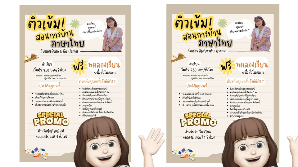 สอนพิเศษภาษาไทย อนุบาล-ประถมศึกษาปีที่ 3 ชั่วโมงละ 250.-