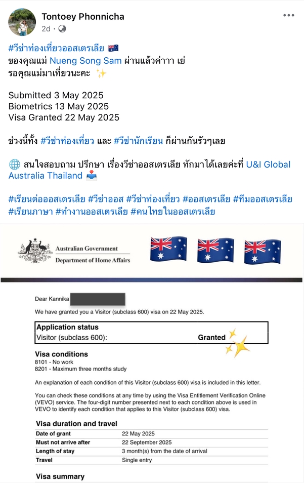 👉🏻รับยื่นวีซ่าออสเตรเลีย 🇦🇺✨ปรึกษาฟรี วีซ่าท่องเที่ยว / วีซ่านักเรียน 👉🏻รับเขียน SOP / GS Statement