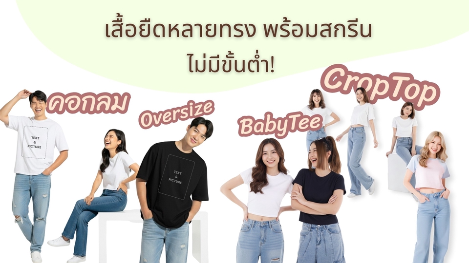 เสื้อยืด พร้อมสกรีน คอกลม,Oversize,Crop,BabyTee ไม่มีขั้นต่ำ