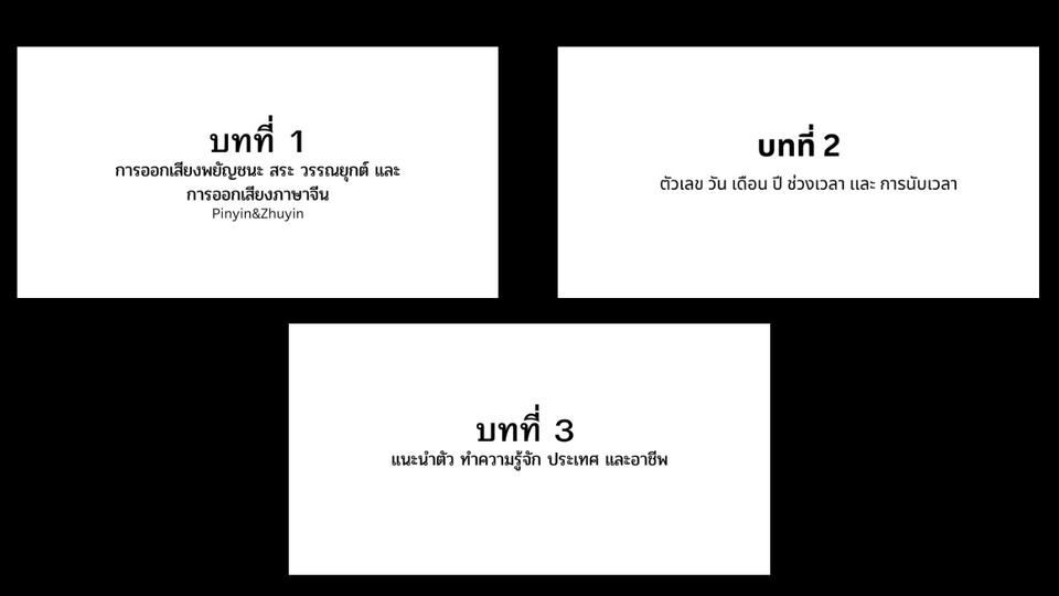 เปิดรับสอนพื้นฐานทางด้านคำศัพท์ภาษาจีน และเสริมการฟังพูดอ่านเขียนภาาษาจีน ทั้งหมด 3 บท บทที่ 1 การออกเสียงพยัญชนะ สระ วรรณยุกต์ และ การออกเสียงภาษาจีน Pinyin&Zhuyin บทที่ 2 ตัวเลข วัน เดือน ปี ช่วงเวลา เเละ การนับเวลา บทที่ 3 แนะนำตัว ทำความรู้จัก ประเทศ และอาชีพ