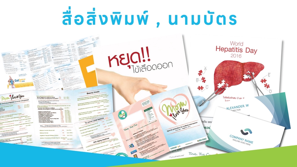 ออกแบบนามบัตร ใบปลิว โบรชัวร์ แผ่นพับ แคตตาล็อค ป้ายต่างๆ