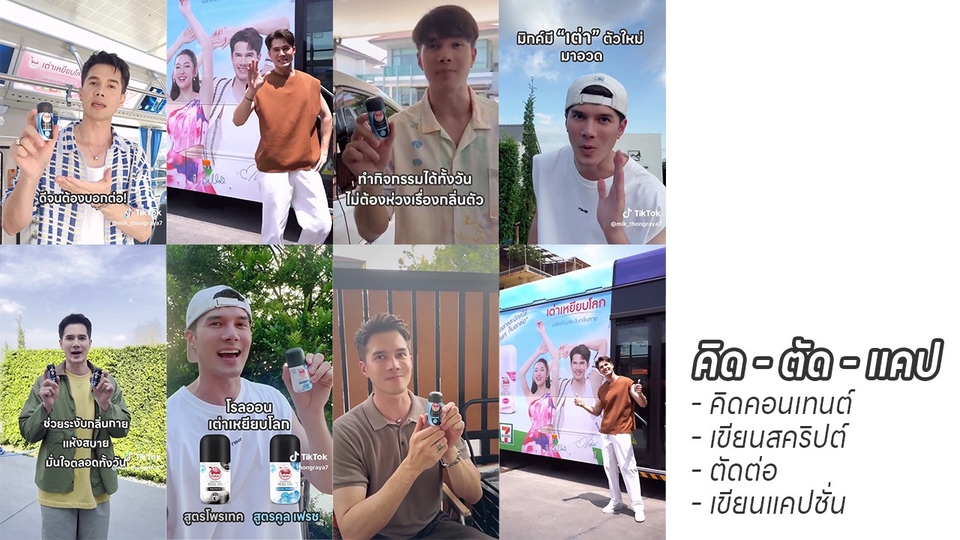 สวัสดีค่ะ ก่อนอื่นขอบคุณที่กดเข้ามาอ่านรายละเอียดเพิ่มเติมนะคะ สำหรับรายละเอียดการทำงานมีดังนี้ค่ะ 1.รับบรีพจากลูกค้า ความต้องการ เนื้อหาคอนเทนต์ สไตล์ที่ต้องการ 2.เขียนสคริปต์คอนเทนต์ให้ลูกค้าตรวจสอบและปรับแก้ (ปรับแก้ได้ 2 ครั้ง) 3.ส่งสคริปต์ยืนยัน เพื่อให้ลูกค้านำไปถ่ายทำ 4.เมื่อได้รับฟุตเทจจากทางลูกค้า จะเริ่มทำการตัดต่อตามสคริปต์ที่ได้วางไว้ 5.ส่งดราฟ 1 เพื่อปรับแก้ (ปรับแก้ได้ 2 ครัง) 6.เขียนแคปชั่นเพื่อจบงาน (ปรับแก้ได้ 1 ครั้ง) รายละเอียดราคา คลิปวิดีโอแนวตั้งความยาวไม่เกิน 2 นาที 2,500 บาท/คลิป - ลูกค้าเป็นผู้ถ่ายทำเอง (คุณภาพของคลิปขึ้นอยู่กับฟุตเทจของลูกค้า) - หากต้องการส่งสินค้ามาให้ถ่ายทำ +1,000 บาท/คลิป (ใช้กล้องมือถือ samsung s23 fe) - ต้องการให้ลงเสียงให้ตามสคริปต์ +250 บาท/คลิป *** ไม่ได้รับถ่ายทำนอกสถานที่ ขออภัยในความไม่สะดวกนะคะ ตัวอย่างคอนเทนต์ : https://drive.google.com/file/d/1s0qGjiCoxn003ONVh-qy2FqPJwiCkg9B/view?usp=drive_link ขอบคุณที่ใช้บริการค่ะ หากสนใจสามารถสอบถามพูดคุยกันก่อนได้ค่ะ