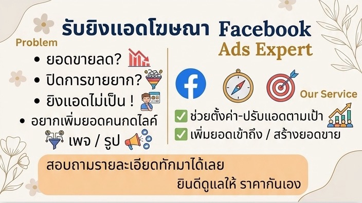 รับยิงแอดโฆษณาในเพจ เฟสบุ๊ค สำหรับสินค้าหรือบริการทุกชนิด **ยกเว้น เว็บพนัน การหลอกลวง การลงทุน** มีให้เลือก 3 แพ็คเกจ - 1.ยิงเพื่อปิดการขาย เพิ่มการทักแชท เปิดการมองเห็น - 2.ยิงเพื่อเพื่อยอดไลค์โพสในเพจ เพิ่มยอดกดไลค์เพจ - 3.ยิงเพื่อปิดการขายและเพิ่มยอดไลค์ แพ็คเกจ1+2 (คุ้มสุด)