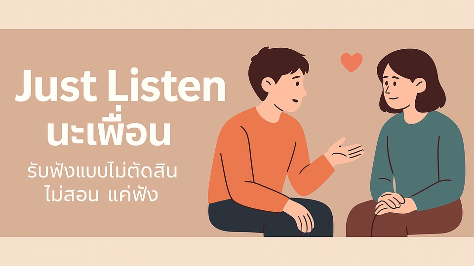 รูปแบบงาน: บริการนี้คือ “การรับฟังแบบไม่ตัดสิน” สำหรับคนที่อยากระบาย หรือแค่ต้องการคนฟังอย่างเข้าใจ ลูกค้าสามารถเลือกได้ว่าอยากระบายแบบไหน: ผ่านแชท (ข้อความ) ลูกค้าพิมพ์มา ผมจะตอบกลับด้วยน้ำเสียงอบอุ่น ให้กำลังใจเบา ๆ หรือแค่ “อ่านและรับรู้” ไม่มีการแนะนำ ไม่มีการแก้ปัญหา ผ่านข้อความเสียง (Optional) ลูกค้าสามารถส่งข้อความเสียงมา แล้วผมจะ “ฟัง” แบบไม่ตัดสินใจ (ไม่จำเป็นต้องส่งกลับเสียงตอบ ถ้าลูกค้าไม่ต้องการ) ผ่านการโทร ลูกค้าสามารถโทรมาระบายหากลูกค้าต้องการ --- สิ่งที่ลูกค้าจะได้รับ: ความสบายใจจากการได้ระบายกับใครสักคนที่รับฟังจริง ๆ ข้อความตอบกลับที่อบอุ่น อ่อนโยน และไม่มีการตัดสิน ความรู้สึกว่า "มีคนอยู่ตรงนี้ด้วย" แม้จะเป็นเพียงข้อความ --- ระยะเวลาให้บริการ: 30 นาที / ครั้ง (หรือตามตกลง) ลูกค้าสามารถเลือกเวลาที่สะดวก แล้วผมจะ “อยู่ตรงนั้น” ฟังให้เต็มที่ --- 📌 หมายเหตุ: ทุกข้อความ/การสนทนา จะเก็บเป็นความลับ 100%