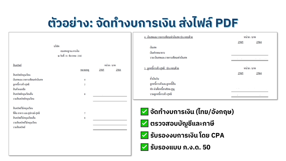 ตรวจสอบบัญชี และเซ็นรับรองงบการเงิน (งบเปล่า ภาษาไทยและอังกฤษ)