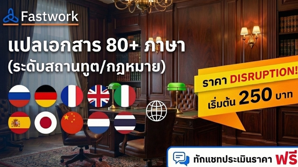 🚫 อย่าเสี่ยงกับงานแปลราคาถูกที่ใช้ AI ส่งๆ 🌍 ภาษาที่เชี่ยวชาญ (80+ ภาษา): 🇺🇸 🇬🇧 อังกฤษ | 🇨🇳 จีน | 🇯🇵 ญี่ปุ่น | 🇫🇷 ฝรั่งเศส | 🇩🇪 เยอรมัน | 🇳🇱 ดัตช์ | 🇰🇷 เกาหลี | 🇷🇺 รัสเซีย | 🇪🇸 สเปน | 🇮🇹 อิตาลี | 🇸🇦 อาหรับ | 🇸🇪 สวีเดน | 🇻🇳 เวียดนาม | 🇮🇳 ฮินดี | 🇹🇷 ตุรกี | …และอีกหลายภาษา 📂 บริการของเรา: • เอกสารส่วนตัว: สูติบัตร, ทะเบียนบ้าน, ใบเปลี่ยนชื่อ, ใบรับรองโสด, ทะเบียนสมรส, ใบขับขี่, หนังสือเดินทาง • เอกสารธุรกิจ & กฎหมาย: สัญญา, MOU, หนังสือรับรองบริษัท, งบการเงิน, เอกสารฟ้องร้อง, พินัยกรรม, หนังสืออนุญาตต่าง ๆ • งานวิชาการ & ทั่วไป: บทความ, คู่มือสินค้า, เว็บไซต์, งานวิจัย, รายงานวิชาการ • งานเฉพาะทาง/เทคนิค: การแพทย์, วิศวกรรม, เทคโนโลยี, วิทยาศาสตร์, ซับไตเติ้ล 💰 เริ่มต้นเพียง 250 บาท (ประเมินตามความยากง่ายและจำนวนคำ) 🔥 The Closer Step: ส่งไฟล์มาให้เราประเมิน แล้วคุณไปโฟกัสธุรกิจ ที่เหลือเราจัดการให้เองค่ะ 💬 ทักแชทได้ 24 ชม. ยินดีให้คำปรึกษาฟรี