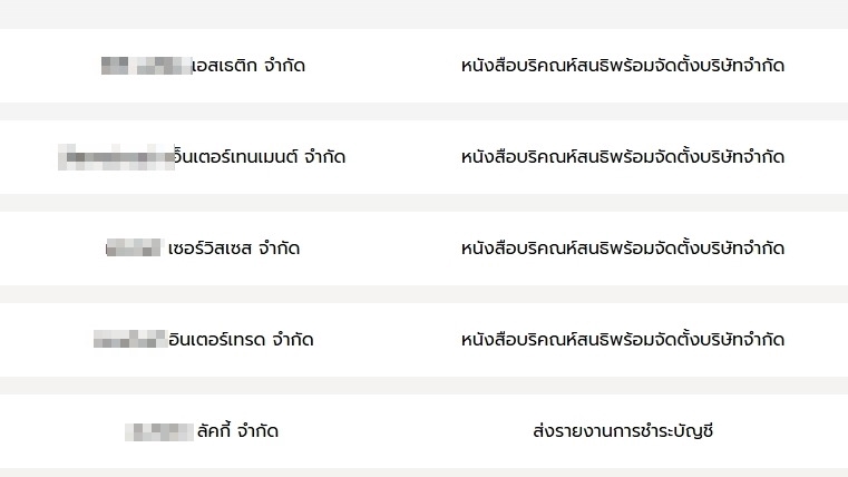 1.บริการจดทะเบียนบริษัท ห้างหุ้นส่วนจำกัด 2.บริษัทแก้ไขหนังสือบริคณห์สนธิ,ตราประทับ,เปลี่ยนแปลงที่อยู่บริษัท,ทุนจดทะเบียน 3.บริการขึ้นทะเบียนประกันสังคมออนไลน์ จดภาษีมูลค่าเพิ่ม 4.ให้คำปรึกษาด้านภาษี การทำบัญชี การจดทะเบียน 5.รับทำบัญชี รายเดือน รายปี ปิดงบย้อนหลัง ขั้นตอนการทำงาน 1. ลูกค้าส่งรายข้อมูล 2. สำนักงานดำเนินการทำเอกสาร 3. ลูกค้ารอรับเอกสาร
