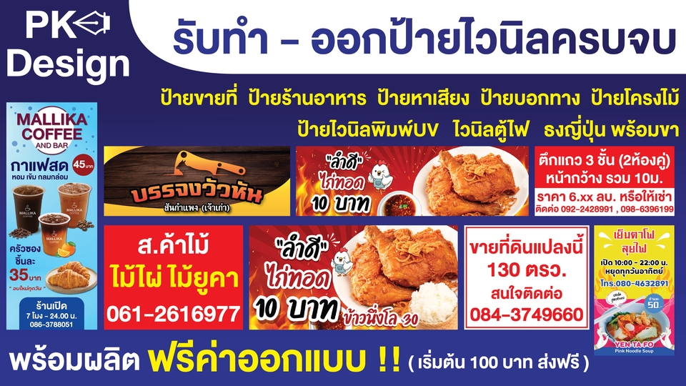 รับทำ ออกแบบ ป้ายไวนิล งานพิมพ์สื่อโฆษณาทุกชนิด มีทั้งพิมพ์ละเอียด สีสันสดใส พิมพ์ยูวี งานทนทานใช้ได้หลายปี