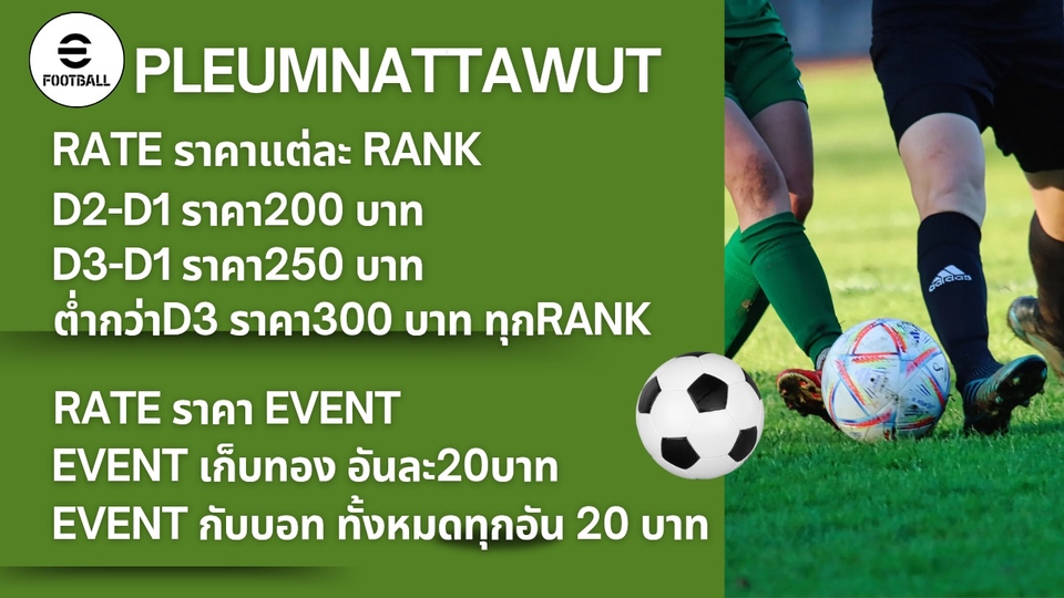 รับจ้างเก็บ Event ต่างๆใน Efootball mobile event ละ20 บาท งานรวดเร็วทันใจ event มาปุ๊บเกฺ็บปั๊บ เเละรับจ้าง ปั่นเเรงค์ขึ้นD1 เริ่มจากแรงค์อะไรก็ได้ ต่ำจากD3ราคา350บาท D3-D1 300 D2-D1 250